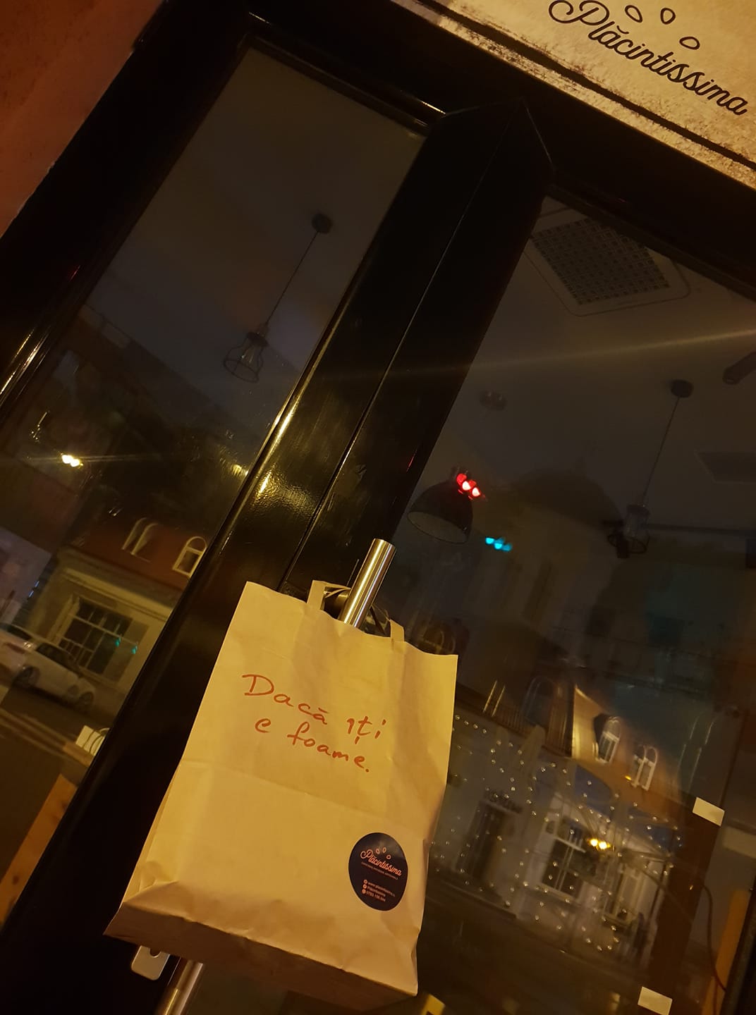 Placintissima din București se alătură demersului și "în fiecare seară, la terminarea programului, vom agăța o pungă cu mancare, în unele seri mai multă, în altele, probabil, mai puțină, cu mesajul #dacaitiefoame".