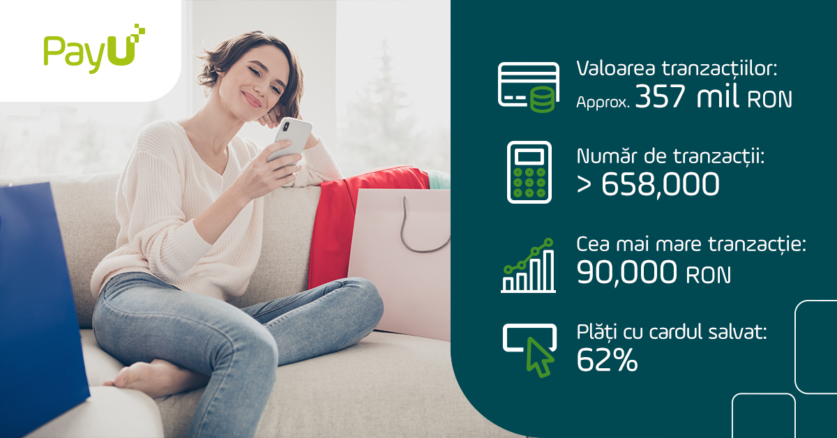 “Tot mai mulți consumatori au înțeles că a achiziționa și plăti online este simplu, rapid și sigur, lucru demonstrat și de faptul că 62% dintre tranzacții (+60% față de ediția precedentă) au fost efectuate cu un card salvat în sistemul PayU sau prin Google Pay”, a precizat Elena Gheorghe.