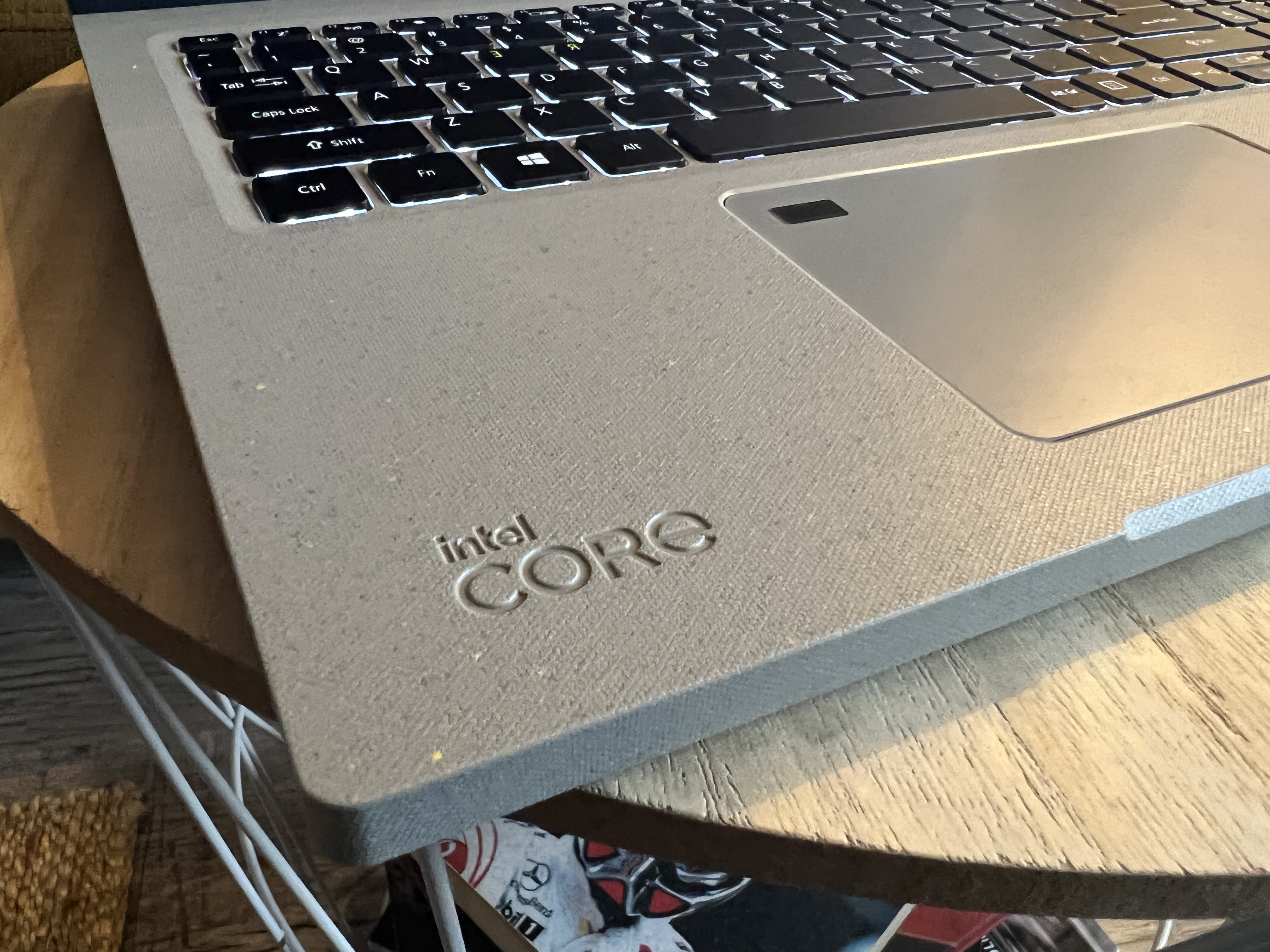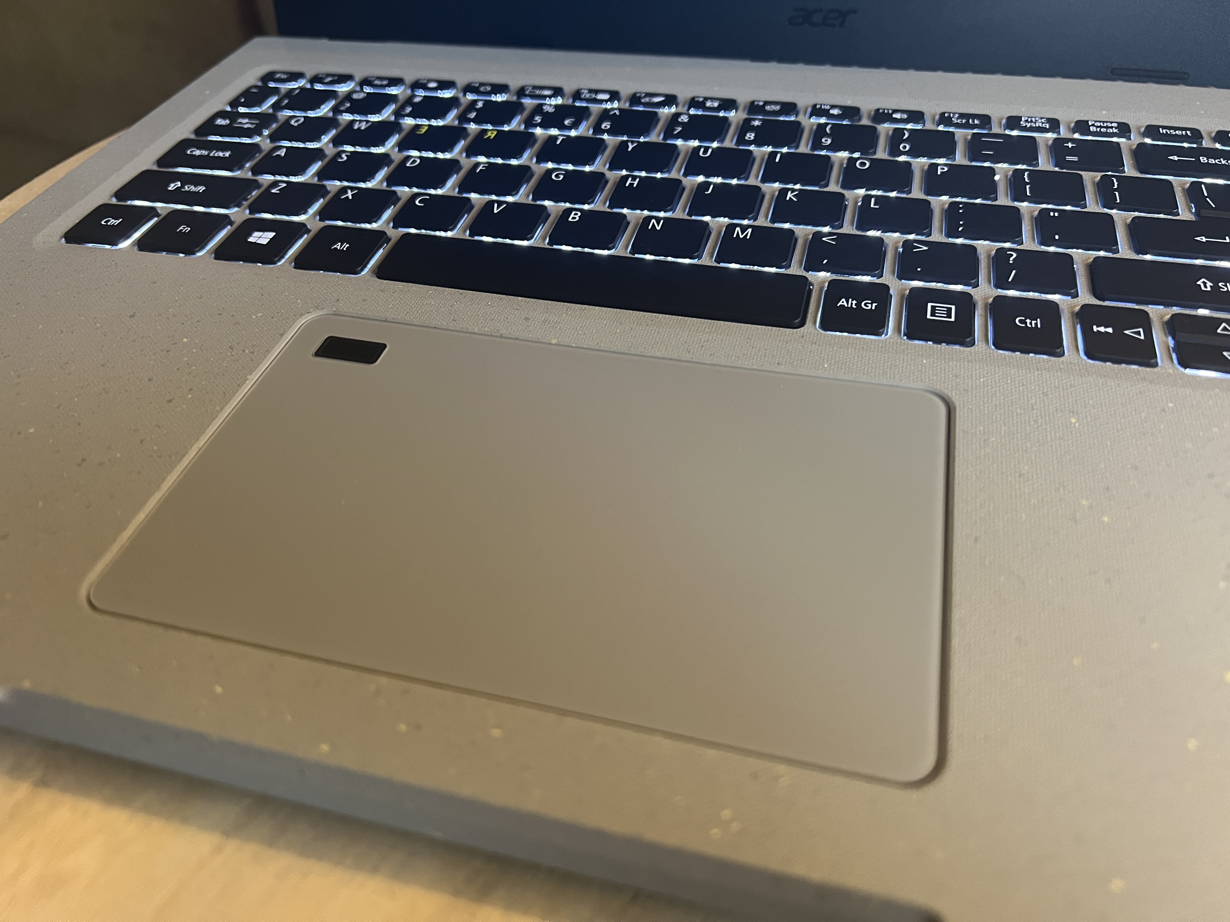 Pentru a se adapta trendurilor actuale, Acer utilizează 30% PCR, adică plastic reciclat postconsum la șasiu și reduce cu 21% emisiile de carbon. Practic, materialul din care e creat e unul rugos și care oferă o senzație interesantă la atingere. E fabricat din rășini post-consum și plasticul este mai durabil. De asemenea, și tastele sunt create 50% din PCR pentru a reduce amprenta de carbon.