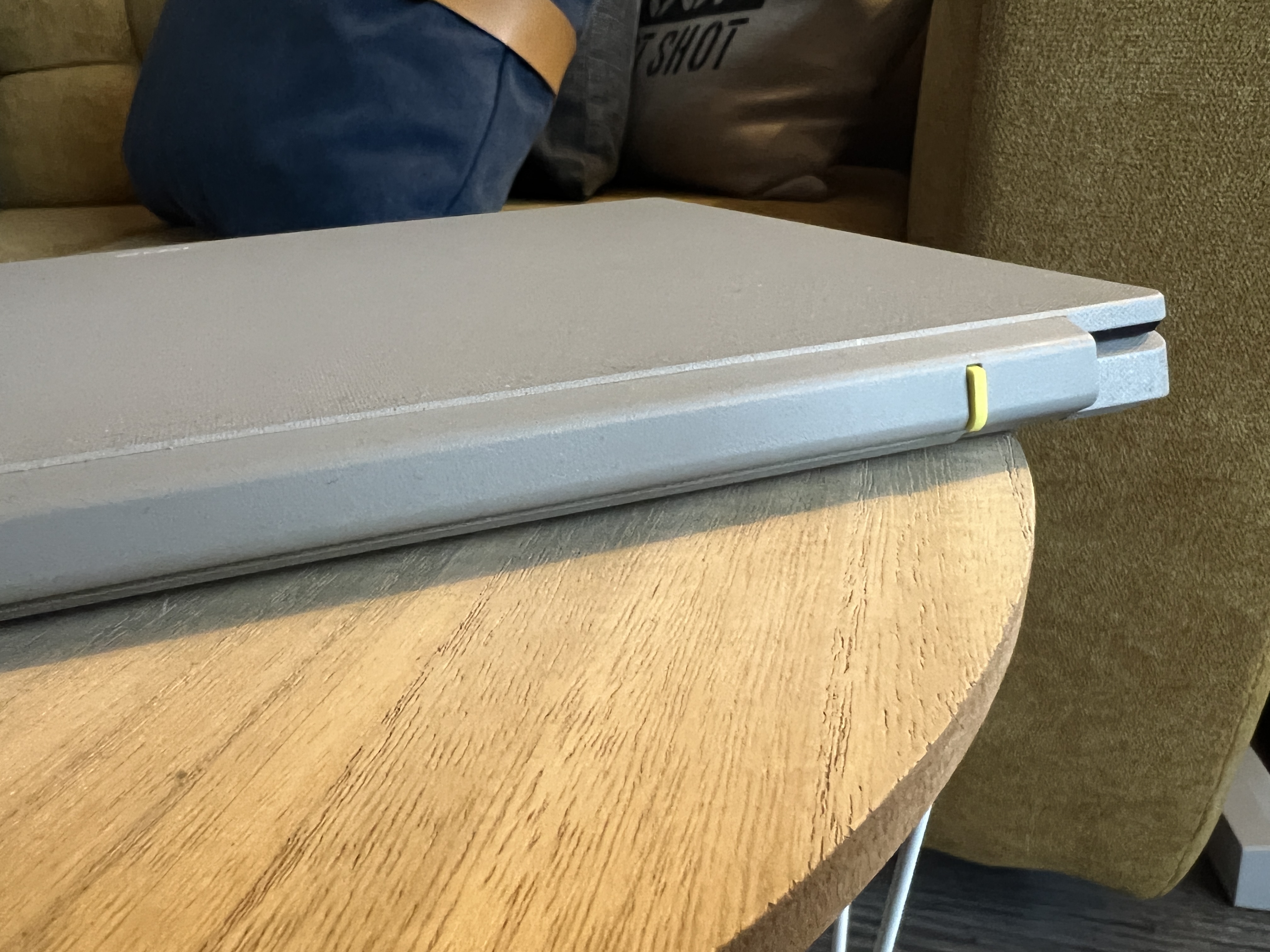 În momentul când scoți Aspire Vero din cutie știi că ai de-a face cu un laptop diferit. Nu e din aluminiu, din plastic șlefuit sau vopsit. E dintr-un plastic reciclat gri cu amprente galbene, care e în același timp stilat, dar transmite și faptul că nu avem aici un dispozitiv normal.