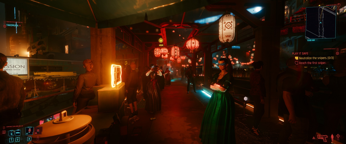 Pentru mine, imersiunea a fost stricată de unele bug-uri, însă și de unele momente scriptate. Prima dată când pășești prin oraș, vezi o metropolă vie cu mulți oameni, cu zgomote și aproape că simți și mirosurile de la tarabele cu mâncare. Asculți involuntar conversațiile celor de lângă tine (unele se transformă în misiuni) și vezi că e viață în lumea asta virtuală, apoi mai târziu treci prin același loc și vezi aceleași persoane vorbind aceleași lucruri, vezi câteodată aceleași conflice dintre poliție și diferitele găști în aceleași locații. Apoi îți dai seama că nu ești V în Night City, ci la mouse și tastatură în spatele unui ecran.