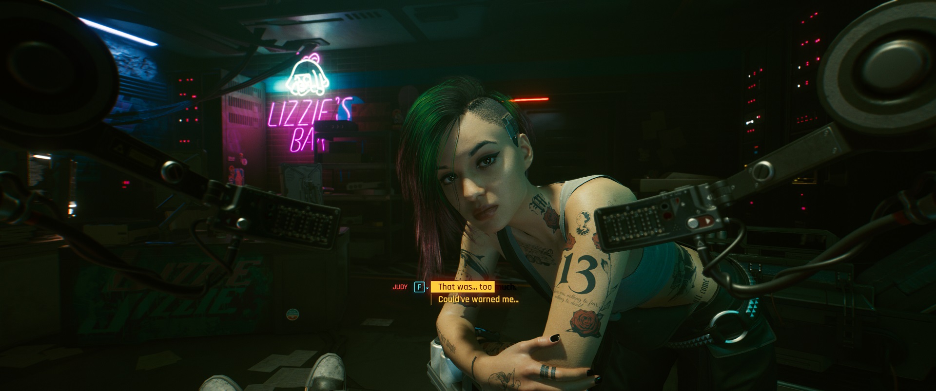 Revenind la grafică, jocul a rulat bine pe un sistem format dintr-un procesor Ryzen 5 5600, placă video RTX 2080 Ti și 16 GB RAM. Am avut între 50-60 de FPS, pe setări grafice ultra, cu ray tracing reflections, ray tracing lighting (medium) cu DLSS Quality, la o rezoluție 3440 x 1440p. Apropo de asta, jocul nu este foarte bine optimizat pentru ultrawide (nu pot să mișc sliderul din photo mode cu mouse-ul și câteodată informația este trunchiată), ceea ce mi se pare foarte ciudat pentru un joc din 2020. DLSS-ul Nvidia e ca un fel de magie pentru jocuri deoarece îmi crește performanța fără să-mi afecteze calitatea imaginii* (mai puțin când te uitai în inventory și personajul părea foarte șters și blurry). DLSS Quality este foarte similar cu ceea ce ai obține la rezoluție nativă. Am încercat și modul Balanced și este ok. Pe modul DLSS Performance am observat o imagine nițel blurată și am preferat calitatea imaginii în dauna unui număr mai mare de FPS-uri.