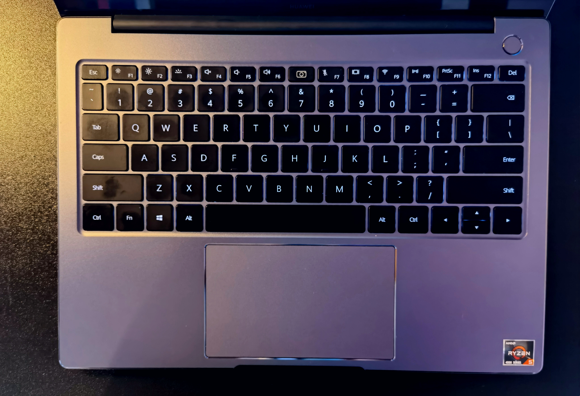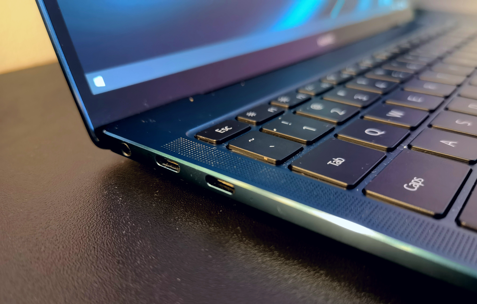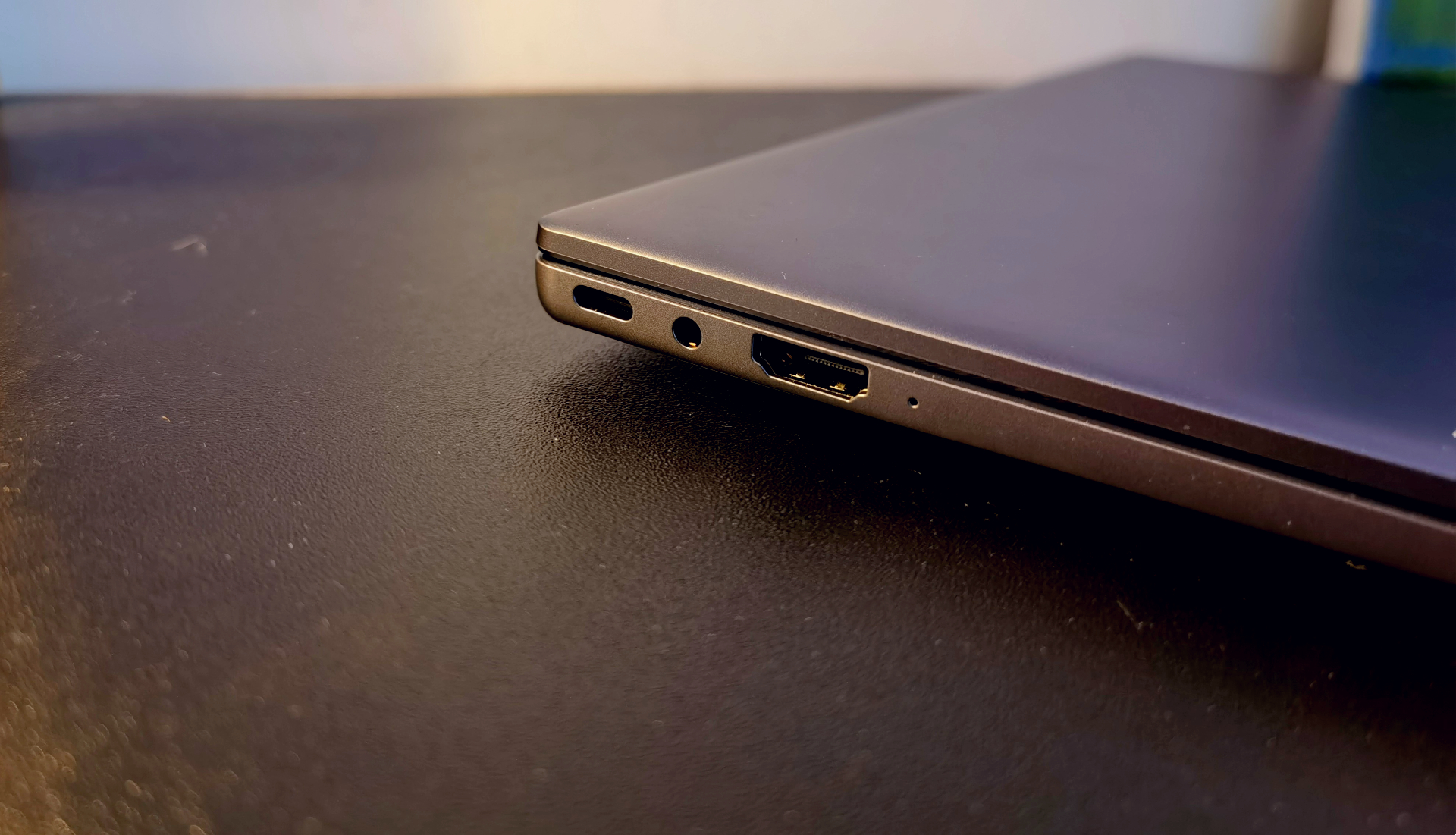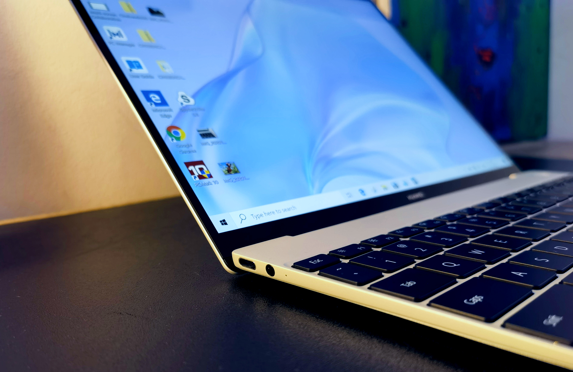 Pe spate avem logoul Huawei, iar pe ecran este o cameră web foarte mică. Butonul de pornire rotund din partea superioară dreaptă a tastaturii ascunde și un cititor de amprente, iar tastatura este una pe care o vei cunoaște rapid. Pe partea dreaptă ai o mufă USB C, iar pe partea stângă încă un USB C care e și alimentare, dar și o mufă de căști.