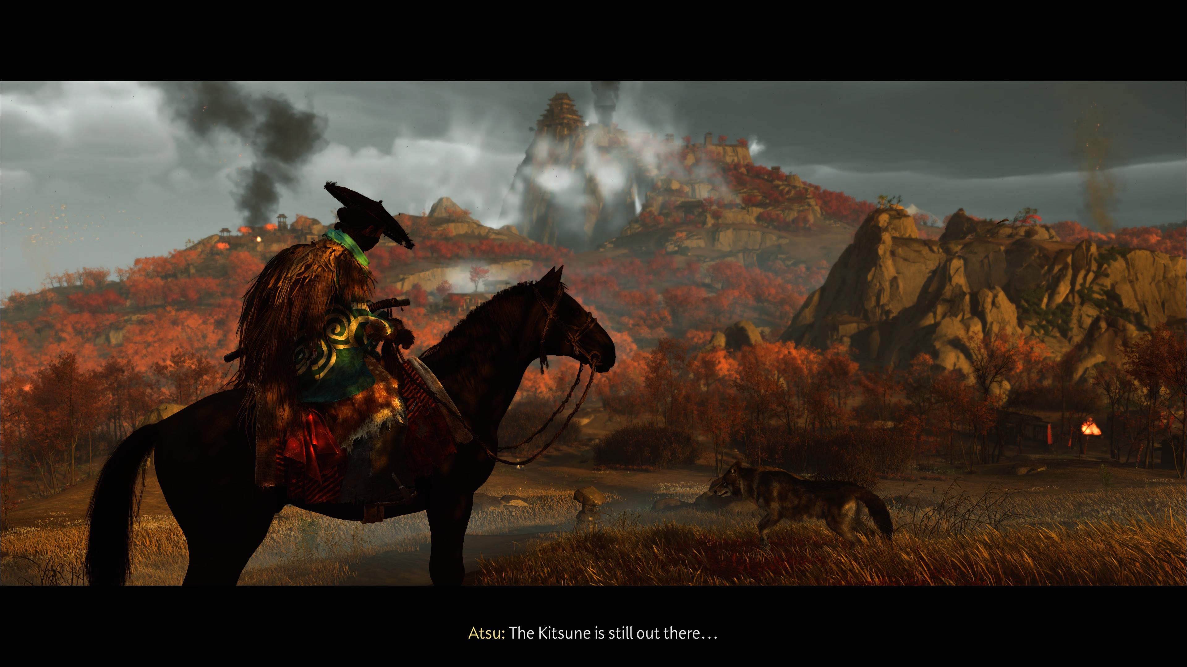 Povestea este mai întunecată și personală, cu accente de legendă populară: localnicii o percep pe Atsu drept un „onryo”, o fantomă răzbunătoare din folclorul japonez. Mitul „fantomei” este transformat acum într-un concept mai larg, care nu are legătură directă cu Jin Sakai sau tradițiile samurailor, ci cu ideea de spirit al răzbunării care se poate reîncarna prin oricine