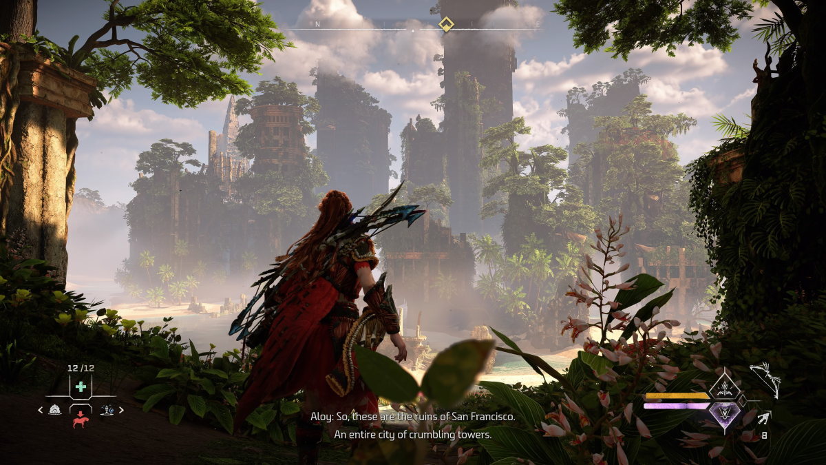 Lumea lui Forbidden West este absolut fantastică, arată grozav și am fost martorul unor cadre fabuloase în diversele zone pe care ni le-au pregătit cei de la Guerilla Games. Vestul Interzis este frumos și plin de surprize: te vei plimba prin deșert, păduri tropicale, vei vizita munți și vei explora clădiri subacvatice. Din punct de vedere vizual, jocul este de nota 10. Pe lângă faptul că aceste peisaje sunt diverse, sunt dense, pline de lucruri de interes și te invită să le explorezi.