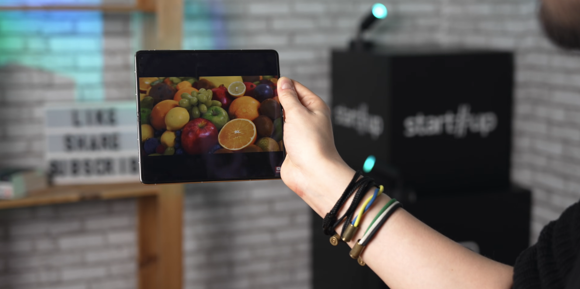 Camerele de selfie sunt duble și wide, aceleași de anul trecut, 8 megapixeli. Dar e un pliabil, poți face un selfie cu camera principală și preview pe ecranul principal.