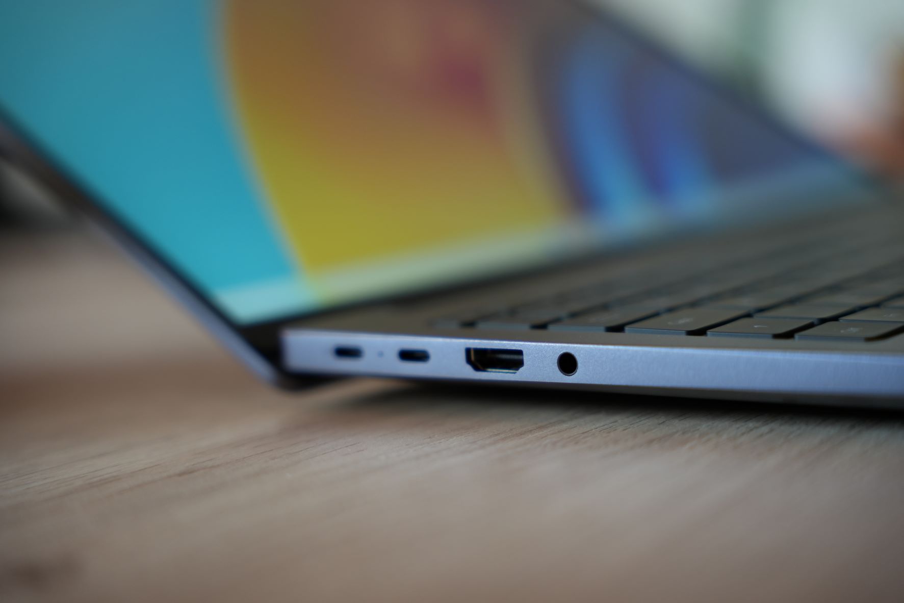 MateBook D16 are mai mult decât suficiente porturi. Mai exact, în dreapta sunt două porturi USB-A 3.2 Gen 1, în stânga e portul de încărcare USB-C (care funcționează și pentru accesorii și transfer fișiere), încă un USB-C cu capacități de Display Port (suportă 4K @120Hz), un HDMI 2.0, dar și un port jack pentru căști. Singurul lucru care lipsește – dar e doar opinia mea, că mă afectează direct - este un card reader. Partea bună e că dacă vei folosi un adaptor nu vei risca să rămâi fără porturi libere, că ai de unde alege.