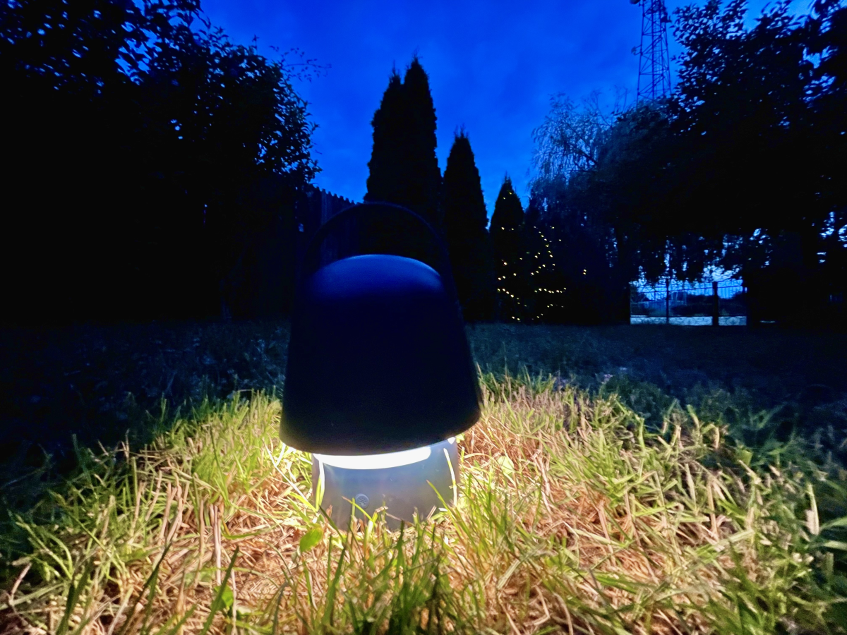 Iar dacă despre difuzor și autonomie vom vorbi ceva mai târziu, despre lumină vorbim chiar acum. Sub ”clopot”, boxa ascunde un LED de jur împrejur care poate fi pornit individual de difuzor și care are două trepte de intensitate. Acest inel luminos creează un ambient foarte plăcut într-un spațiu restrâns și arată fenomenal când boxa e așezată în iarbă - cumva te atrage, ca într-un joc video, aratând ca un checkpoint în care vei primi un sidequest.