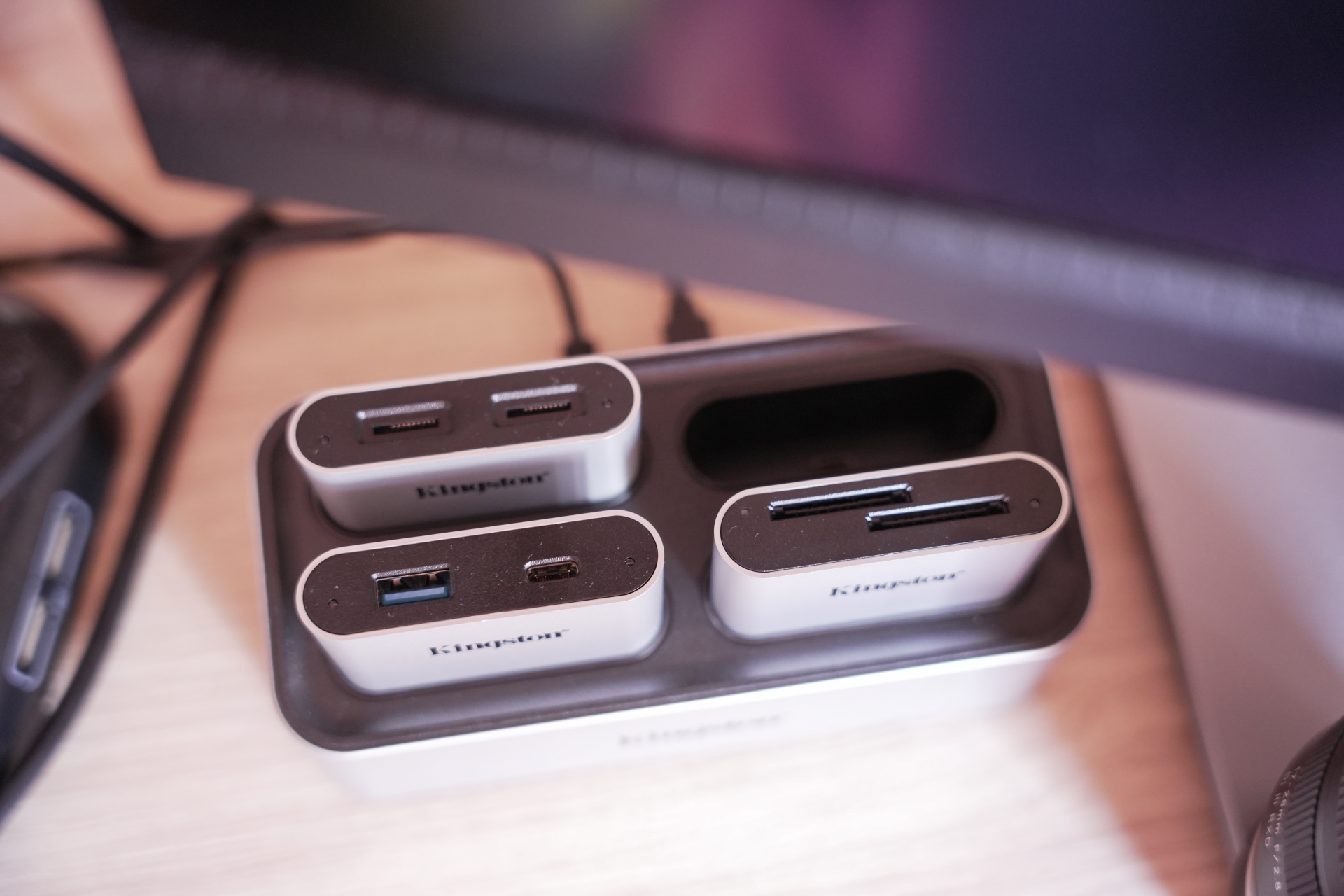 Nu este rar când filmăm podcasturi cu trei camere și am nevoie să copiez trei filmări diferite de pe trei carduri diferite pe SSD-ul intern sau extern. Înainte introduceam fiecare card în parte și le copiam pe rând. Cu Kingston Workflow Station pot să le copiez pe toate trei în același timp, două cu cititorul de carduri SD și altul cu cititorul de microSD. Iar dacă am nevoie să le copiez pe un SSD extern pot să-l conectez la laptop prin cititorul mini-hub care are un port USB 3.2 și unul Type C.