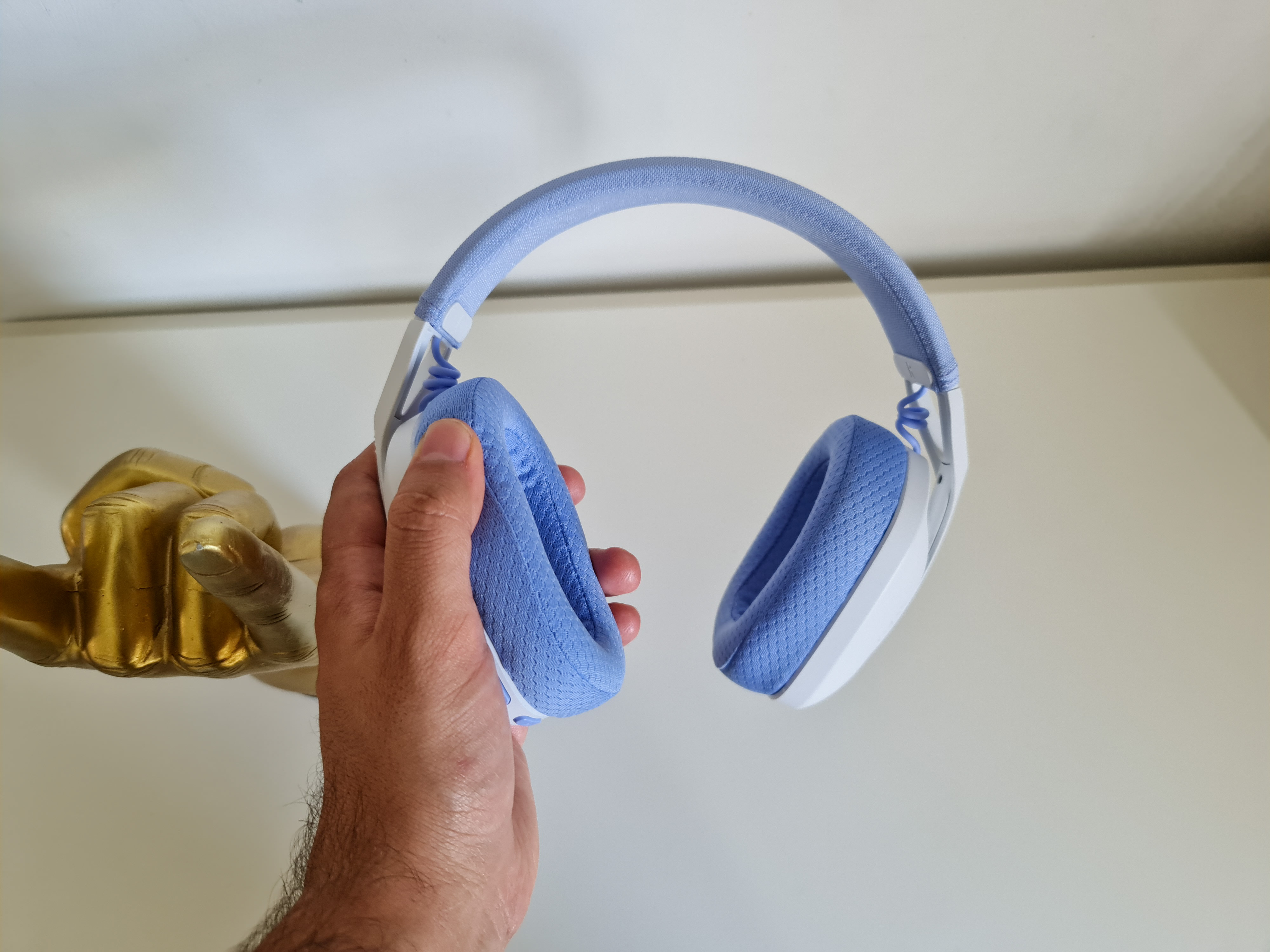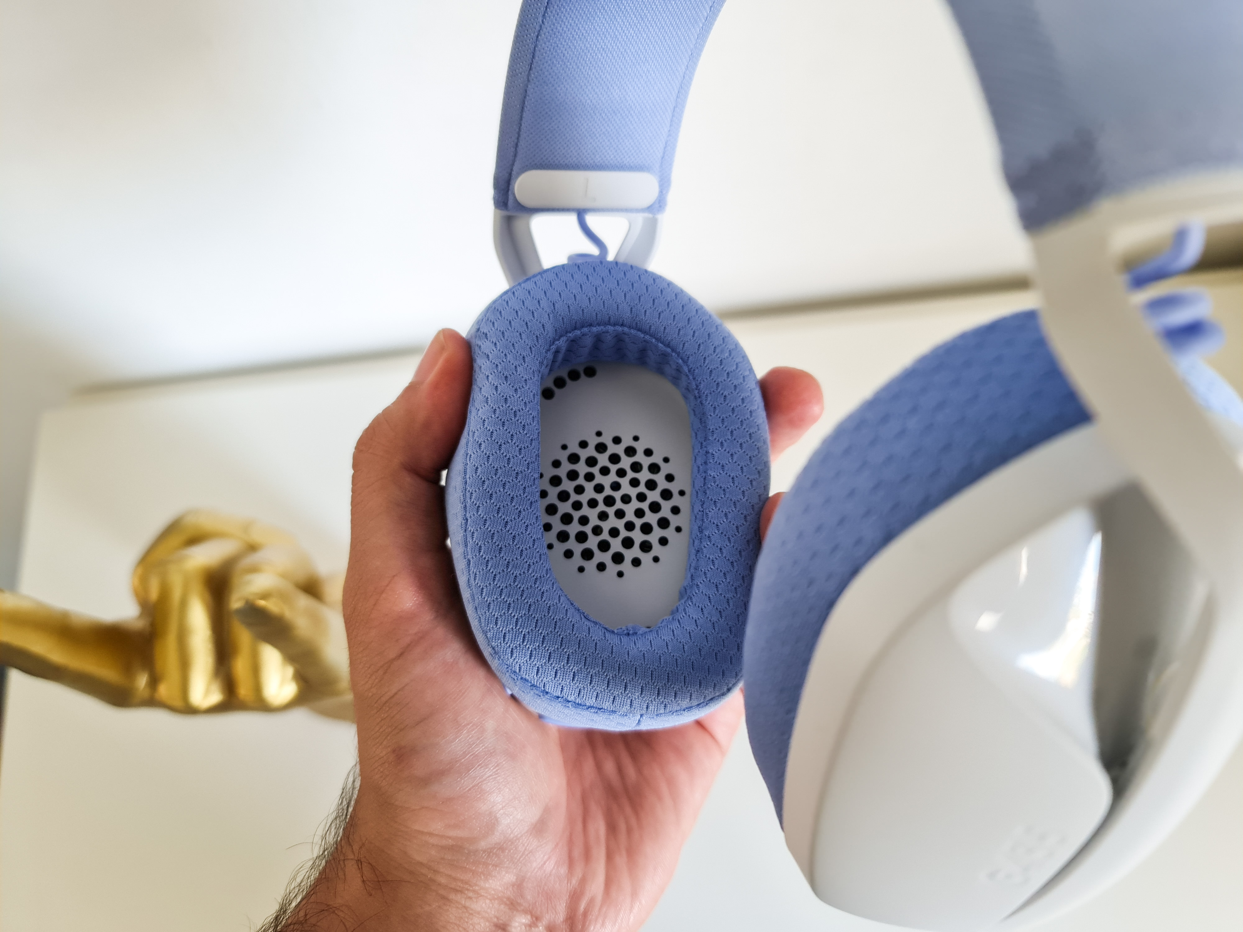 Microfonul nu este detașabil precum vezi pe alte căști, ci este încorporat, ceea ce poate fi o idee bună dacă vrei un pachet mic și simplu. Brandingul Logitech este minimal și vezi doar pe cupe celebrul G și denumirea de G435. Cupele au un burete bunicel, iar pe interior acestea nu sunt acoperite de niciun fel de pânză. Inițial am crezut că o să fie o problemă, dar de-a lungul perioadei de test nu m-a deranjat deloc.