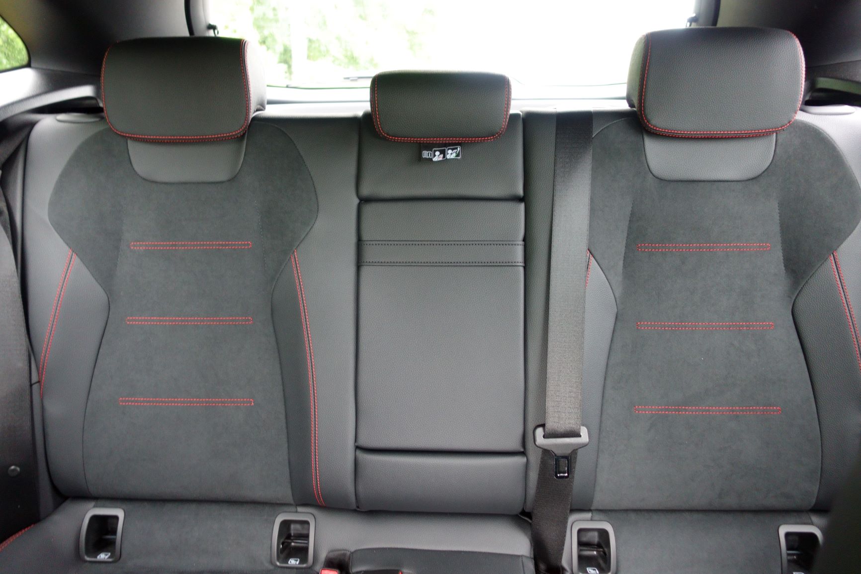 Altfel, interiorul are lumini ambientale care oferă o senzație foarte plăcută noaptea și se văd discret ziua, acestea fiind și la pedale, pe marginile portierelor și pe bord, iar culorile se pot schimba. Când vine vorba de scaune, nu am fost neapărat fanul pielii de pe acest EQA pentru că era foarte... sticky. Arăta bine, foarte masculin, cu elemente de culoare interesante, dar efectiv dacă vrei să te foiești un pic la drum lung nu prea ai cum că te lipești cu blugii de scaun. Știu, o problemă foarte random.