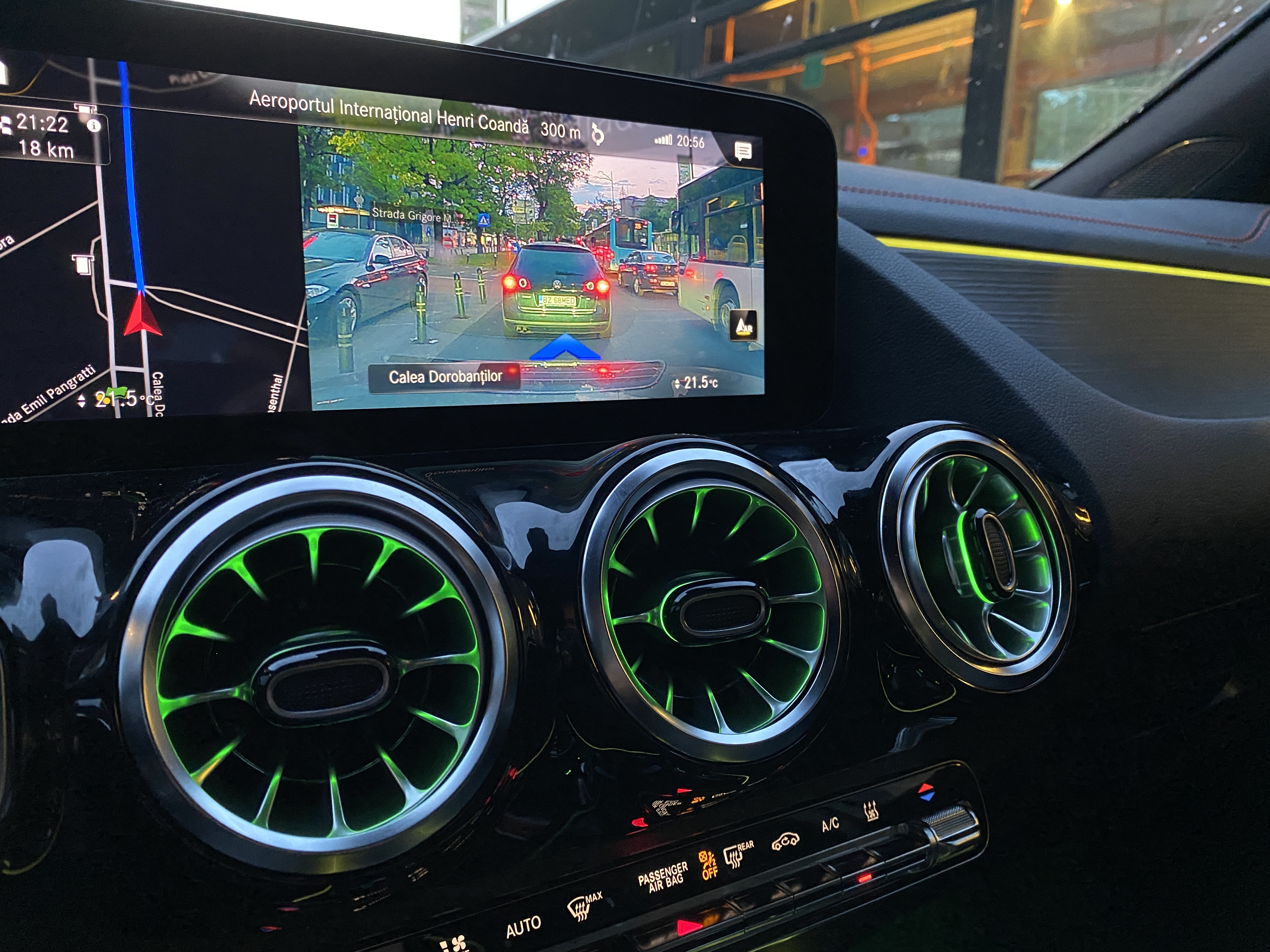 Fantele aerului condiționat sunt foarte sexy și-mi plac mult, deși dacă ești ca mine și ai un suport de telefon sau odorizante montate acolo, uită de ele. Am căutat pe tot internetul și nu există un suport de telefon potrivit pentru sistemul acesta de la Mercedes. Dar! Există un mare dar. În principiu pentru telefon nu ai nevoie de nimic. Poți avea Apple CarPlay și Android Auto care te ajută să nu mai folosești telefonul pentru asta. Pentru partea cu odorizantele, chiar nu am ce să-ți zic. Mai caut.