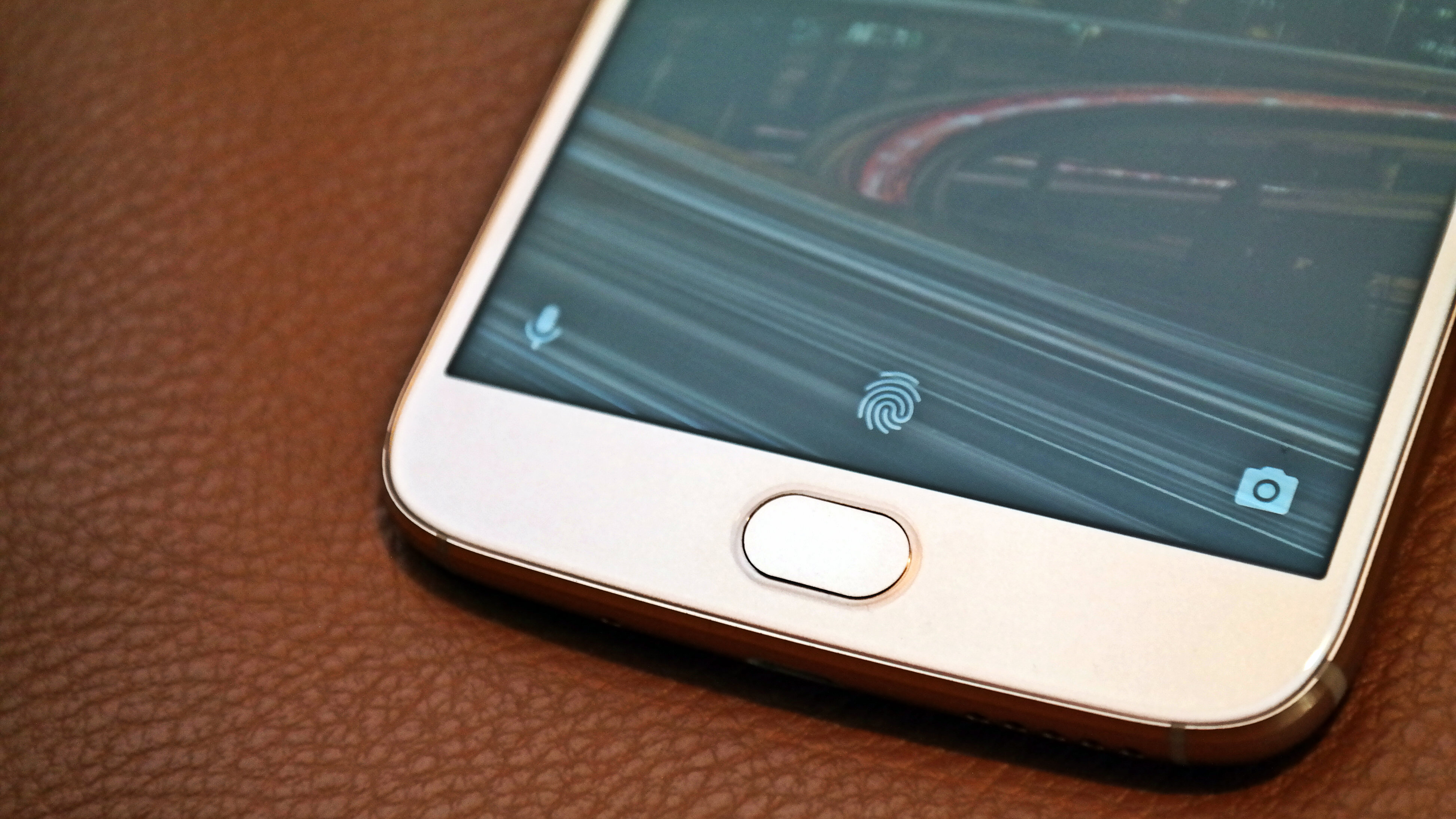 În partea frontală sticla este rotunjită și creează un efect bun, iar butonul central are incorporată și o amprentă care funcționează excelent.