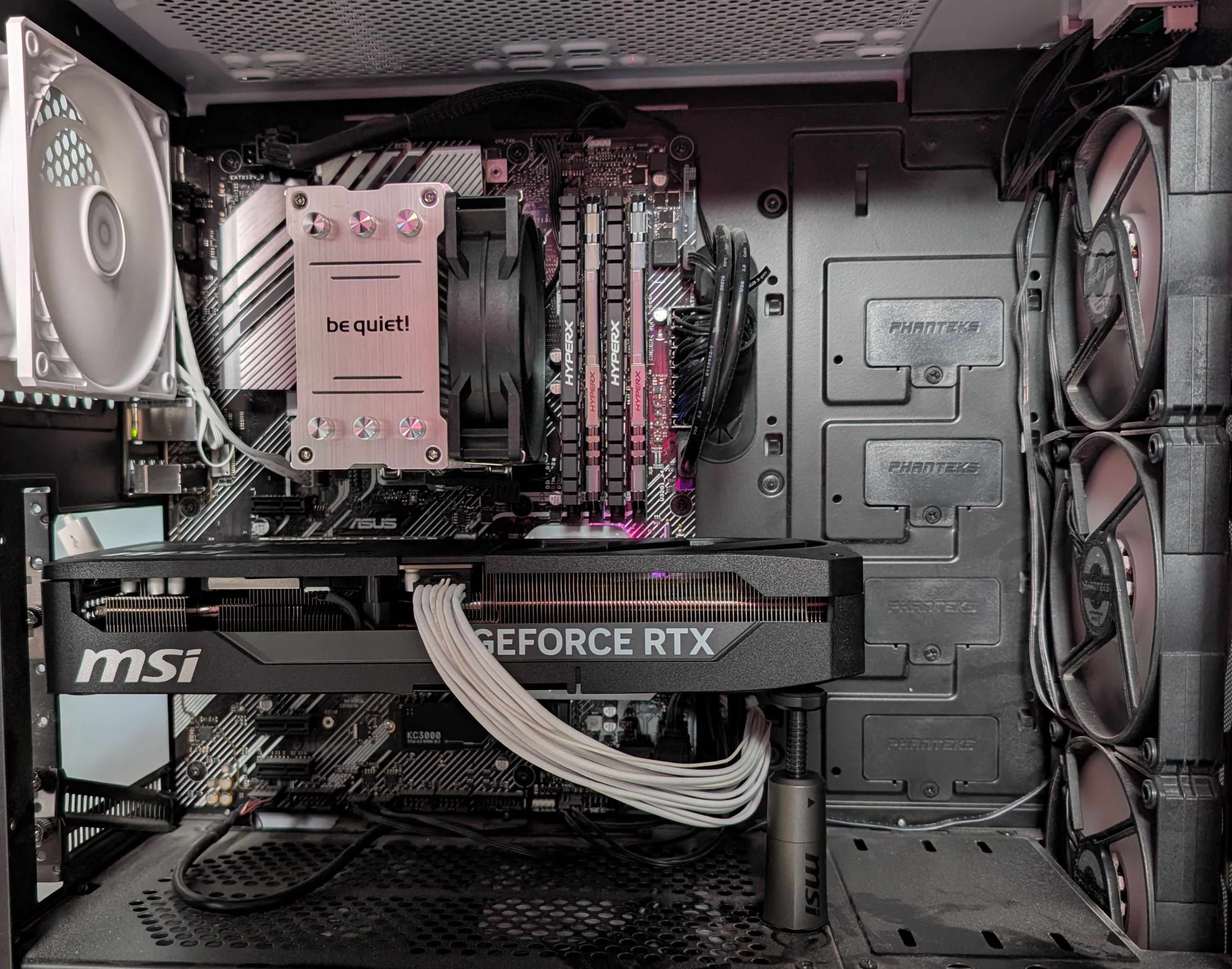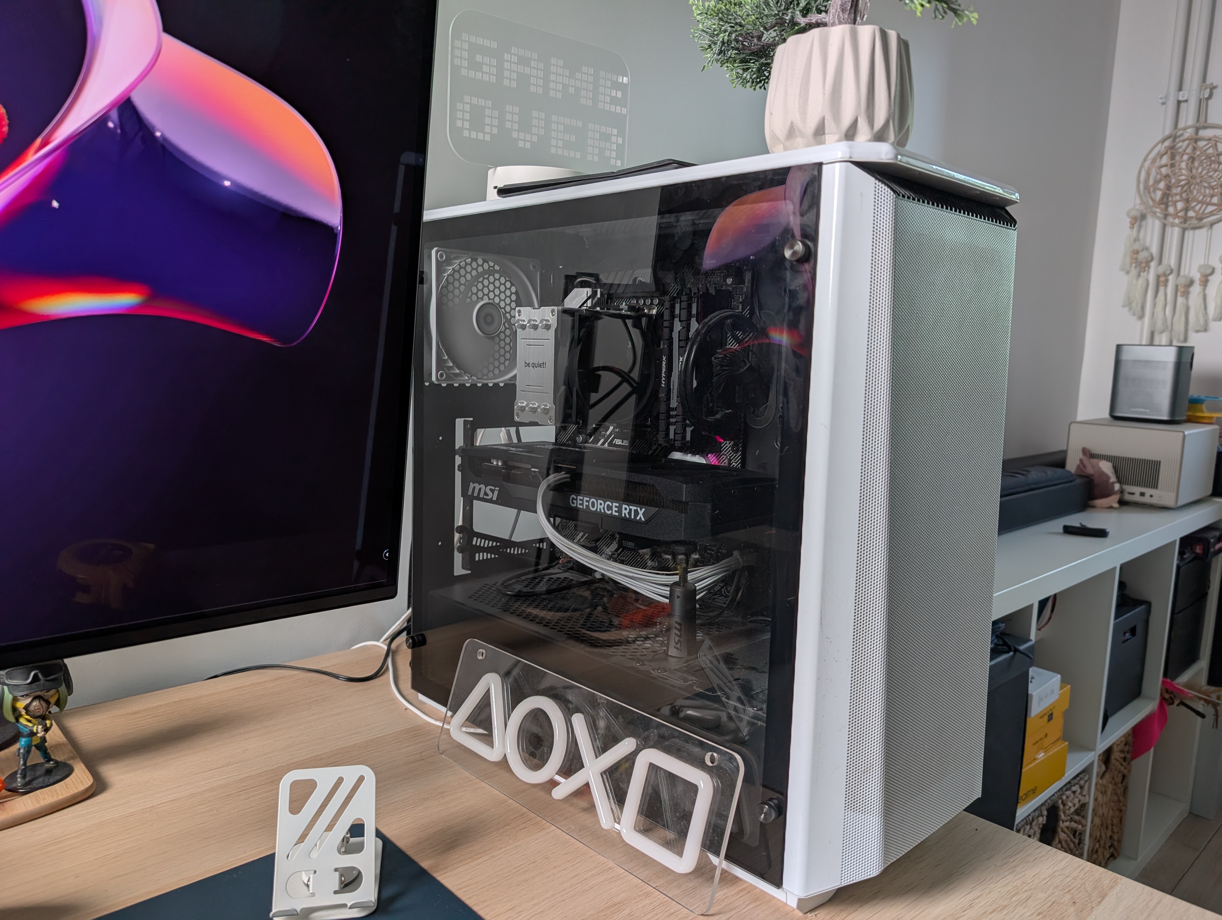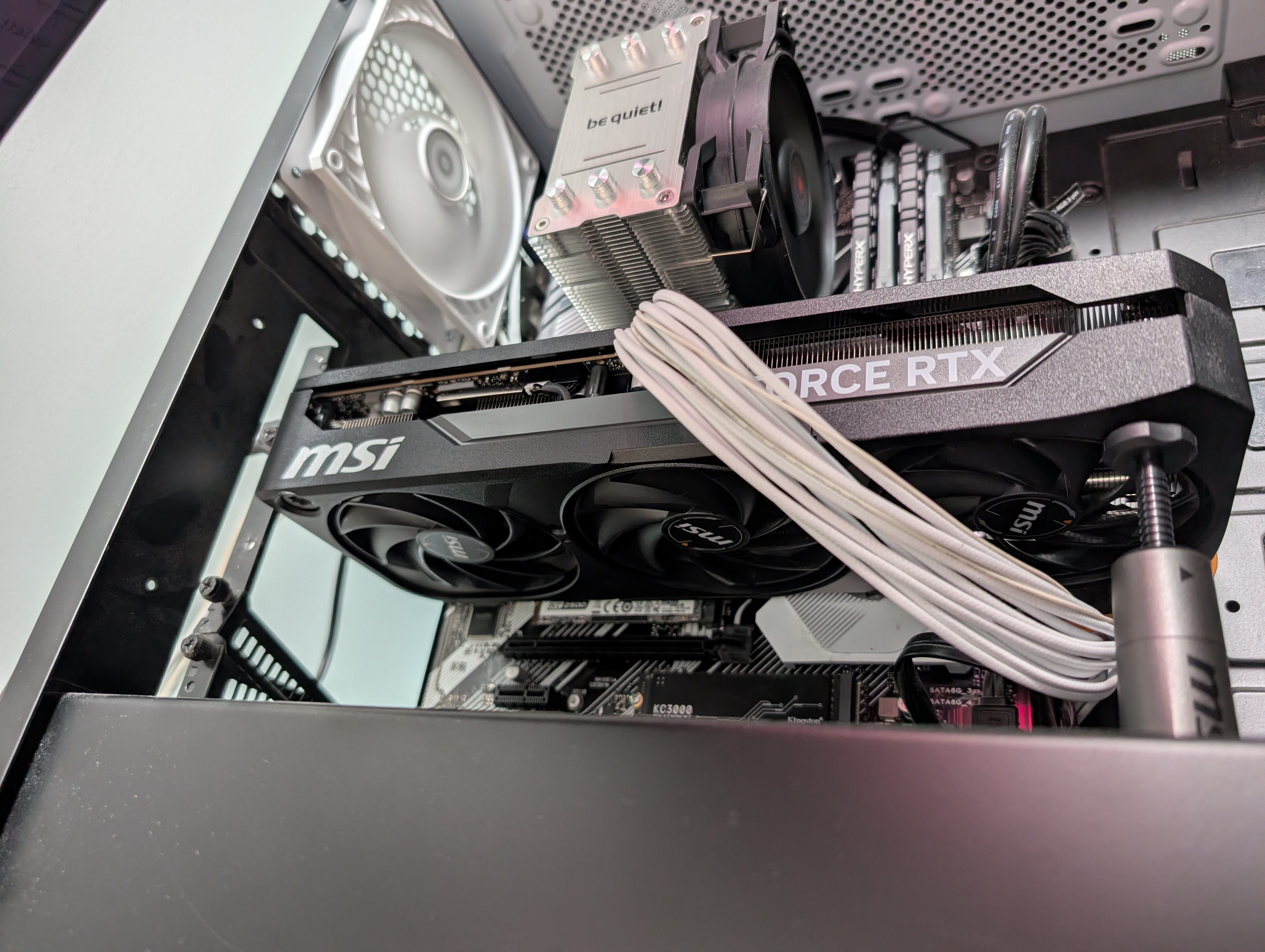 Placa nu are RGB, are un design destul de cuminte, iar acest model Shadow este discret și se poate integra în orice fel de build. Pentru acest review am instalat placa video în vechiul calculator, dar pregătim un upgrade despre care vă povestim mai multe în curând. Așadar, în unele situații, placă video s-ar putea descurca și mai bine în scenariile în care actualul procesor nu face față. PC-ul în care am instalat-o are un procesor Ryzen 5 5600x, 32 GB memorie RAM DDR4 și o placă de bază ASUS. Pe viitor ne ducem către un procesor cu mai multe nuclee și memori DDR5. Dar hai să vedem cum se descurcă placa video în acest scenariu.