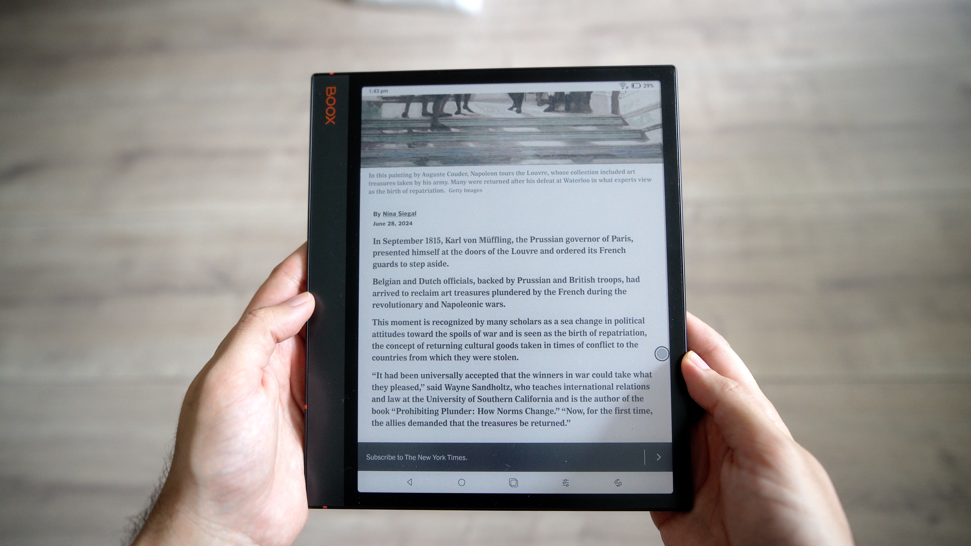 Totuși, pentru că poți nu înseamnă și că ar trebui. Note Air 3C este un dispozitiv de citire și luare de notițe, în esență și cam asta ar trebui să faci. Iar acest model în sine are și avantajul că poate afișa culori. Poți să citești comic books, să navighezi pe internet, să citești știri și așa mai departe. Totuși, imaginile nu vor arăta grozav, iar tableta deși oferă culori, gama și saturația culorilor nu sunt la fel de vibrante ca pe un ecran LCD sau OLED, fiind mult mai palide. Însă good enough pentru a citi un comic-book de exemplu.