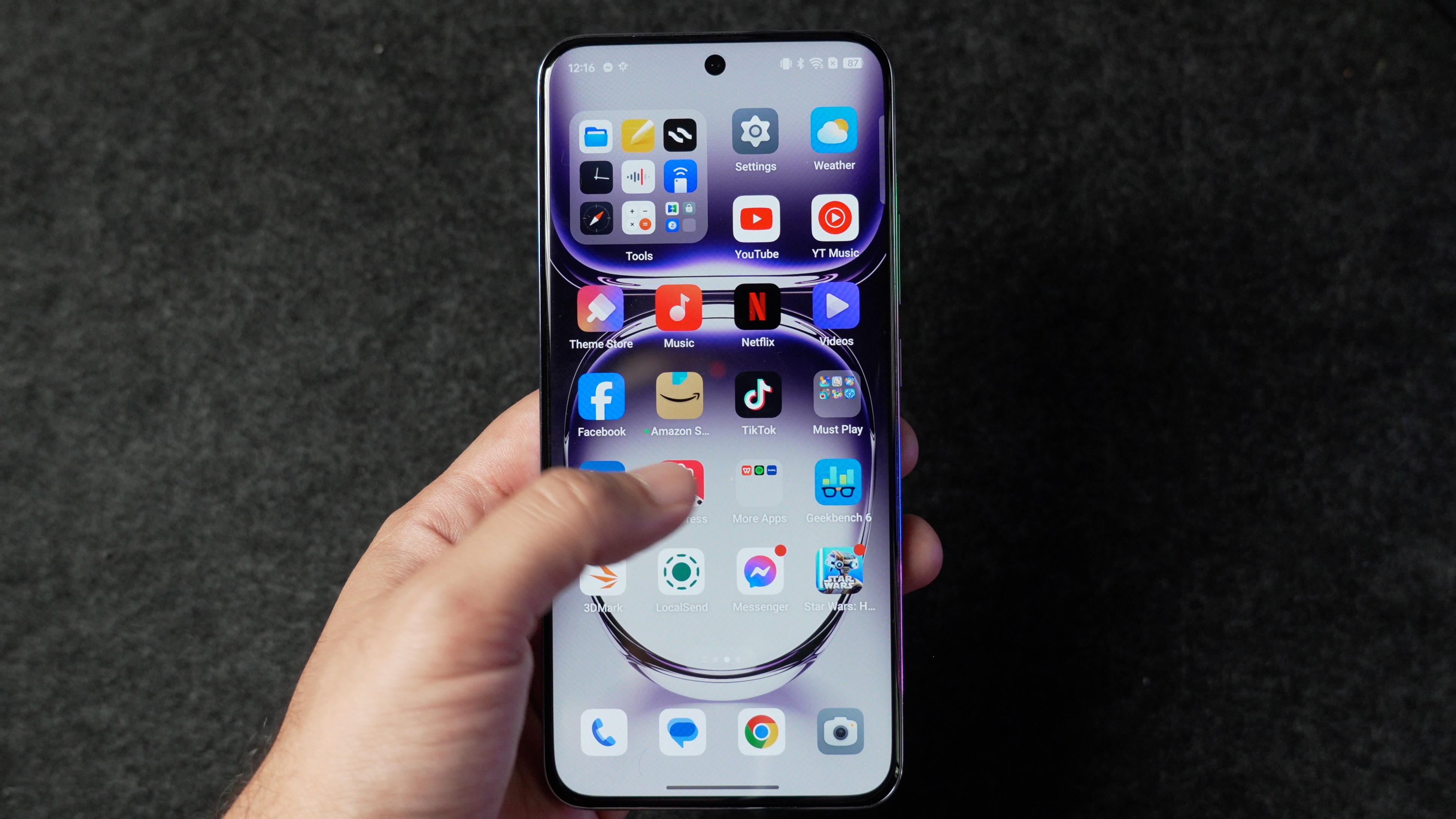Oppo Reno12 Pro se distinge printr-un look destul de premium cu un spate parcă făcut din valuri care prinde bine lumina și reflexiile. Marginile sunt plate, iar spatele este din plastic, dar se simte plăcut în mână, ușor și are o priză bună. Telefonul cântărește 181 de grame și are o grosime de 7,45 mm, dar asta nu înseamnă că se și strică ușor. Acesta are un structură realizată dintr-un aliaj ce ar trebui să ofere o rezistență mare la îndoire și la căzături. Noi nu aruncăm cu telefoane, nu le îndoim la review, însă am văzut cu ochii mei la evenimentul de lansare presiunea pe care acesta o poate susține și este impresionant. Nu cred că o se întâmple ceva cu el dacă te așezi pe el sau dacă-ți scapă din mână.