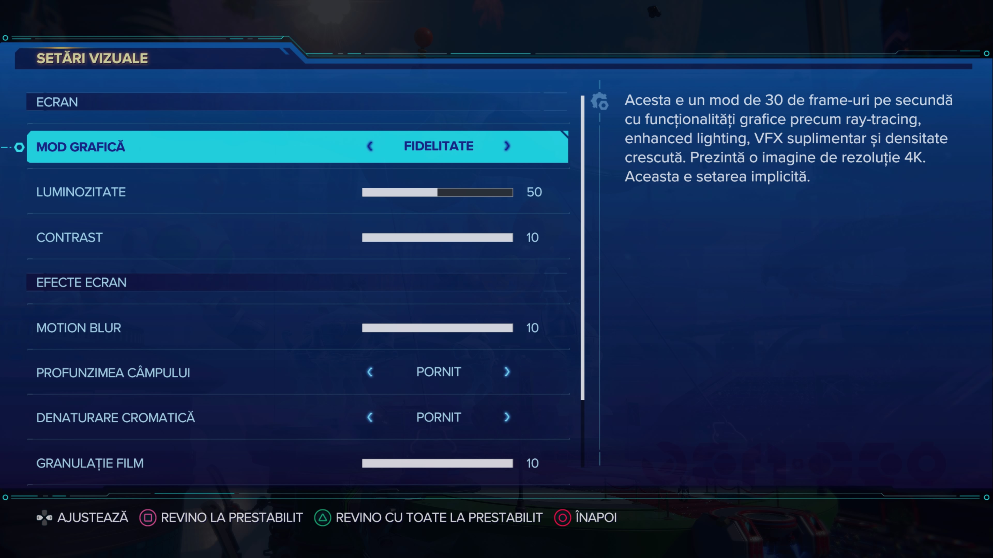 Acestea fiind zise, haideți să trecem la grafică, elementul care te va uimi încă de la început. Cum vorbim de un joc PS5, acesta poate fi jucat la rezoluție 4K (upscaling) la 30 de fps cu ray tracing și alte îmbunătățiri grafice sau pe modul performance 1080p la 60 de fps sau performance cu ray tracing. Eu am jucat cap-coadă în modul fidelity, apoi la al doilea playtrough am trecut și la celelate două.