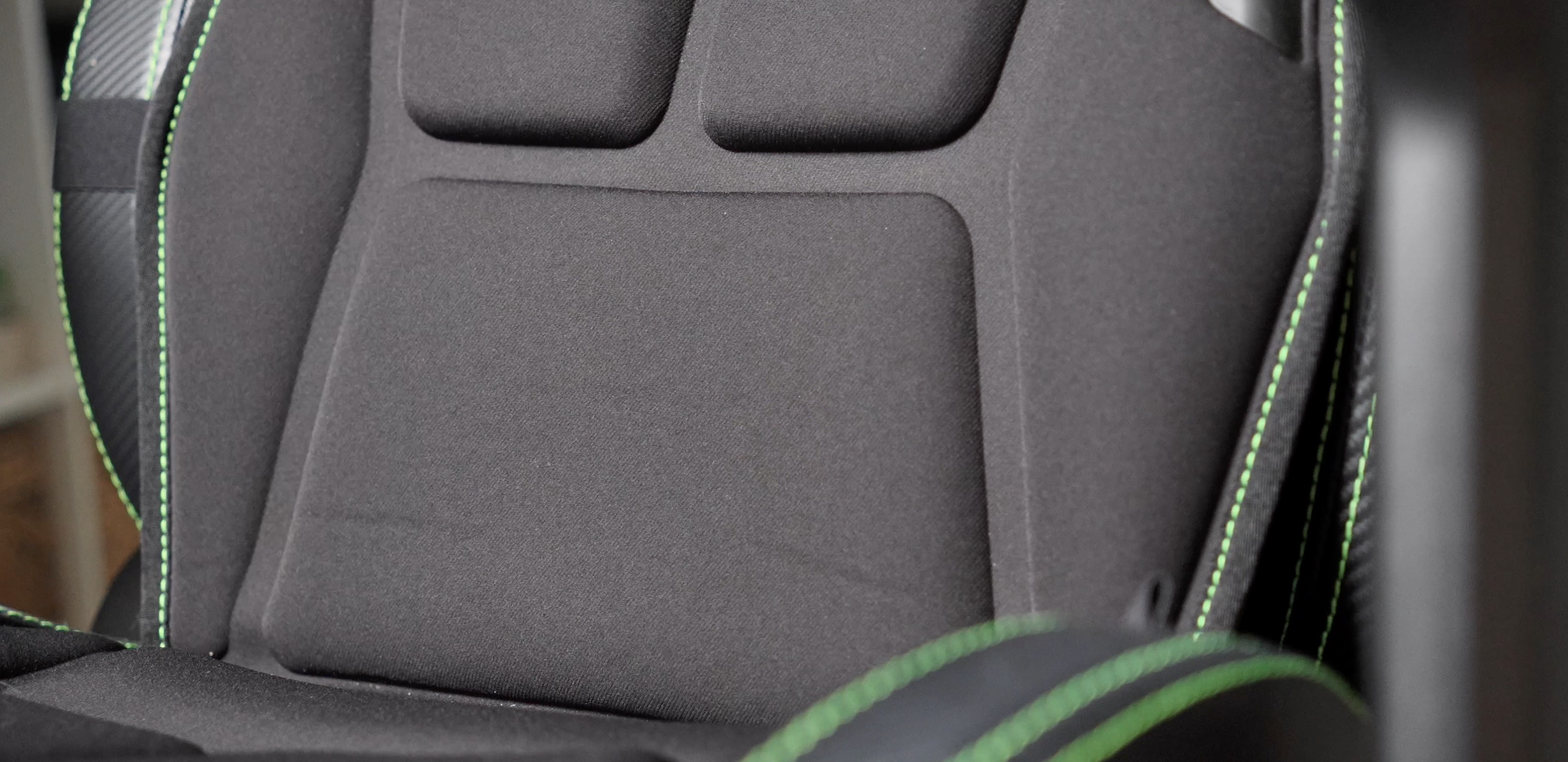 Husa are 6 zone de acționare pentru vibrații: două pentru șezut și patru pentru spate și pe lateral are un buton pentru pornire și oprire și pentru a crește sau a scădea intensitatea feedbackului haptic. Avem și logo Razer care este iluminat. Husa este comodă și am stat ore în șir pe ea și niciodată nu am întâmpinat vreun disconfort. Singura chestie este că după mai multe ore de funcționare simțeam cum se încălzește, mai ales în zona spatelui și acum e plăcut, dar poate vara nu va fi o senzație bună.