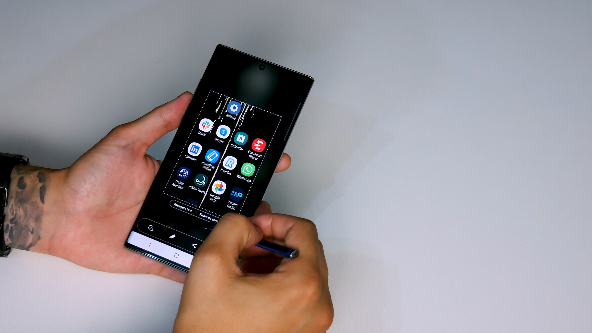 Am folosit și S10+ în trecut, iar Note 10+ cu ecranul său de 6,8 inci e foarte complicat de folosit cu o singură mână. Alunecă destul de ușor, dacă nu ai degetele lungi nu prea ajungi dintr-o parte într-alta a ecranului, așa că va trebui să ai grijă să nu-l scapi. E o problemă obișnuită cu telefoanele din sticlă.