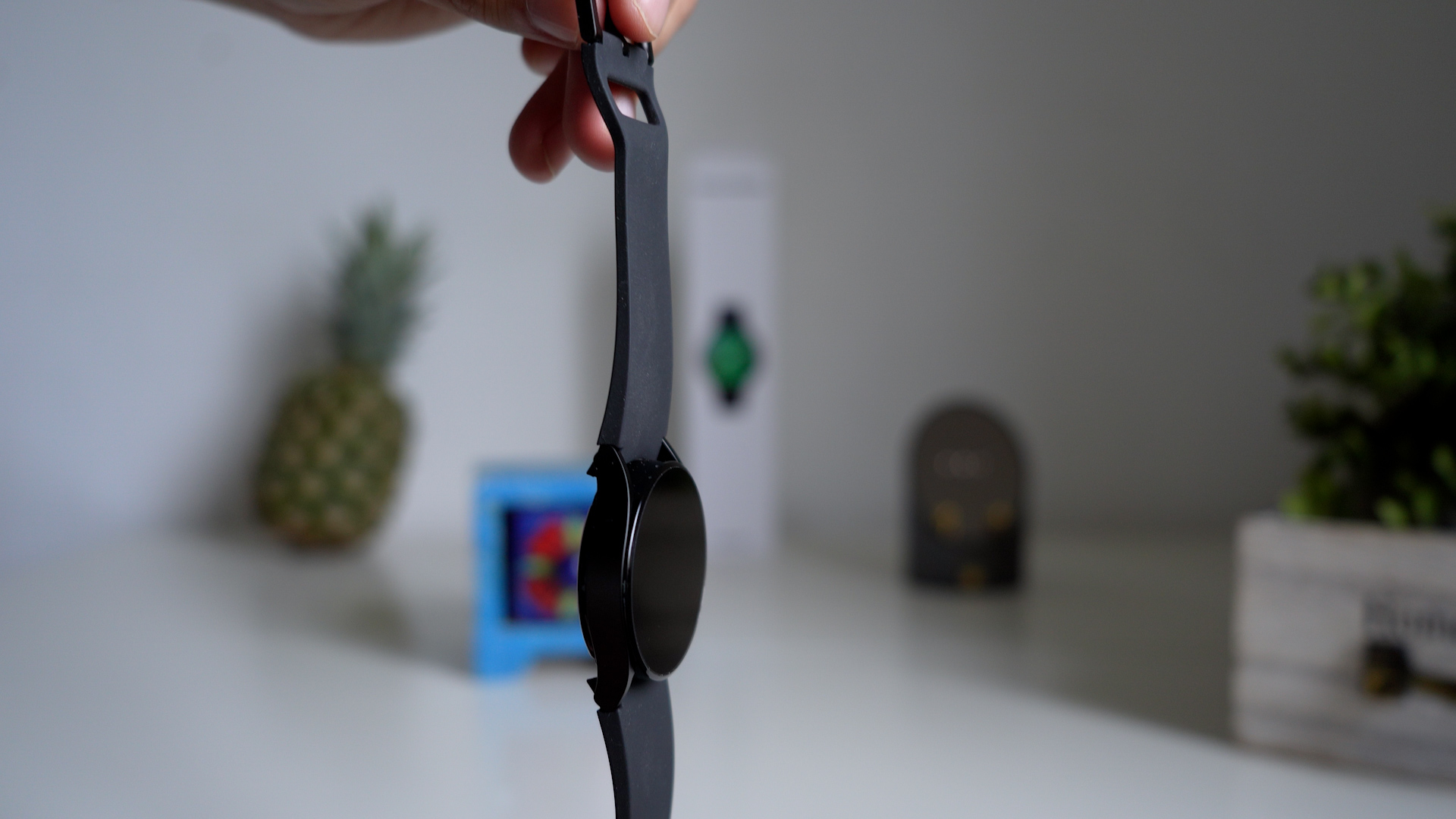 Acest model de 40 mm este ușor și cântărește doar 26 de grame, ceea ce e un avantaj deoarece nu prea-l simți la mână și poți să dormi cu el cu ușurință, însă și un dezavantaj deoarece se simte ca o jucărie, dar nu este bineînțeles. Ecranul este Super AMOLED de 1,2 inci și are o rezoluție de 396 pe 396 de pixeli și este suficient de luminos pentru a fi folosit și în lumina soarelui.