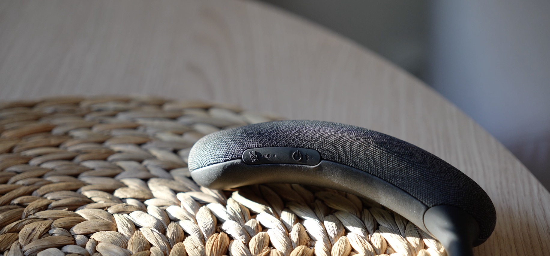 Avem două bucăți dreptunghiulare rotunjite legate de această bucată de cauciuc moale. Exteriorul este acoperit de un material textil, iar la interior se află un material din piele vegană plăcută la atingere. Difuzoarele se află în partea de dus și vin direct sub urechi. Pe laterale avem și butoane utile pentru control. Pe o parte avem un buton de pornire și cel de blocare al microfonului, iar în cealaltă parte avem un buton pentru creșterea volumului, altul pentru scădere și cel din mijloc pentru a pune pe pauză, iar cu o dublă apăsare trece la următoarea melodie.