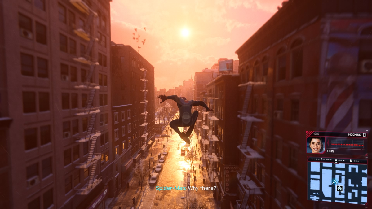 La nivel de joc, Spider-Man: Miles Morales a rămas la fel de distractiv și îți oferă un sistem de luptă complex și dinamic, iar explorarea New York-ului legănându-te de pe o clădire pe alta este fantastică. După primele pânze de păianjen trase pe clădiri mi-am zis că mi-a fost dor de asta și am continuat să mă arunc de pe clădiri. În plus, Miles pare că se distrează mai mult ca Peter când se plimbă prin oraș și face tot felul de scheme în aer, fără un input din partea jucătorului.