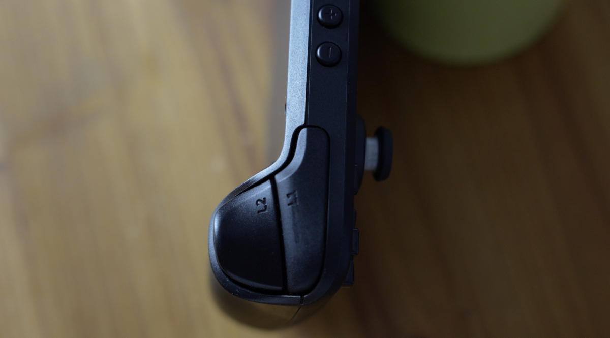 Dar asta nu este tot și pe spate mai avem alte 4 butoane care pot fi folosite în jocuri. Acestea nu sunt setate pentru o anumită funcție din fabrică, dar le poți folosi tu cum vrei. Eu nu le-am folosit deoarece îmi este greu să le apăs cu ultimele două degete de la mâini și acestea sunt și destul de rigide și greu de apăsat. În partea de sus avem butonul de pornire, port de încărcare USB-C, mufă de căști și două butoane pentru volum, iar în partea de sus avem un slot pentru un card microSD.