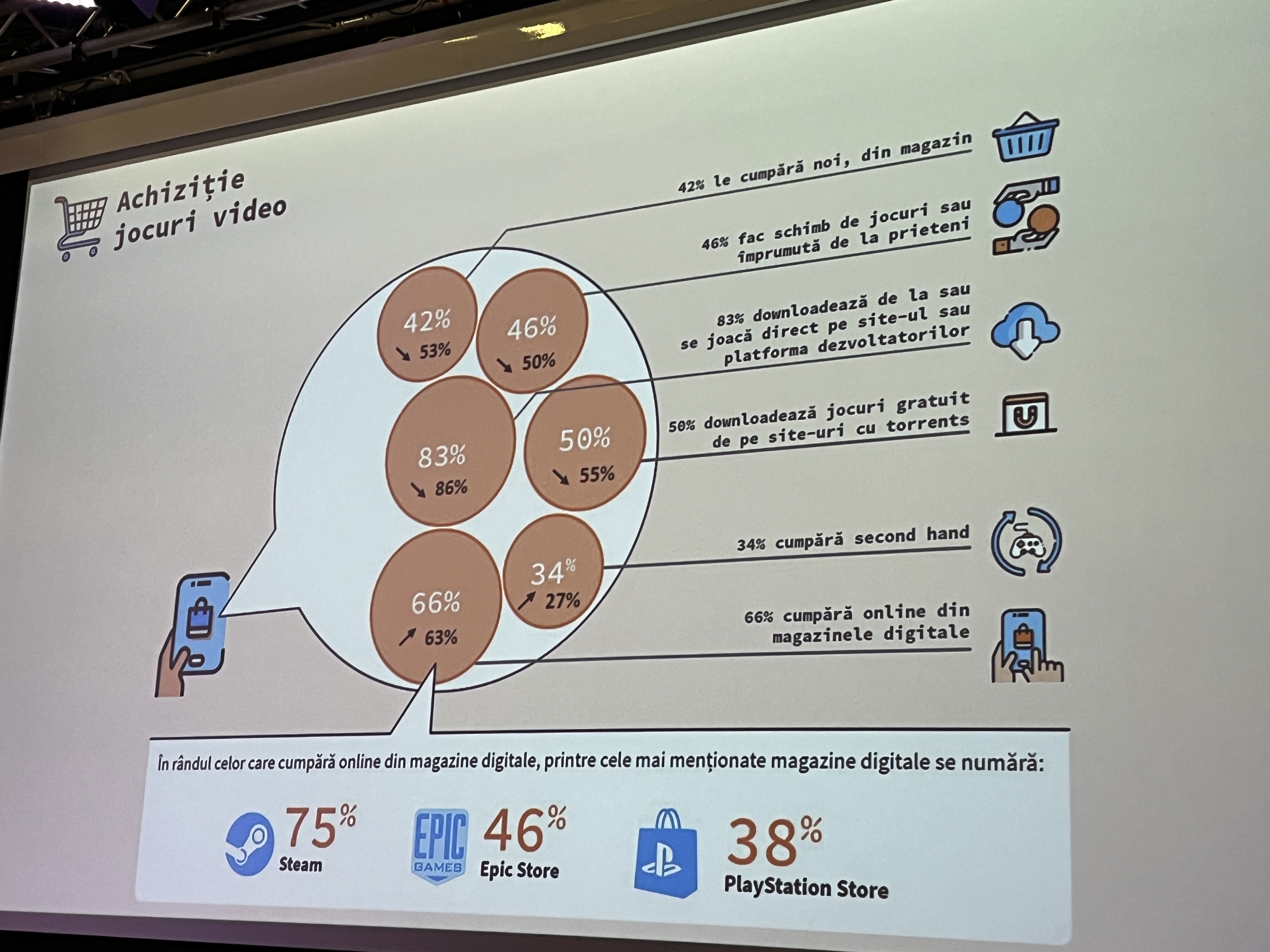 42% din jucători cumpără jocurile noi din magazin, 46% fac schimb de jocuri cu prietenii, iar 83% le descarcă direct de pe site-urile dezvoltatorilor. 50% spun că descarcă jocuri de pe site-uri de torrente. De asemenea, 66% cumpără online din magazine digitale.