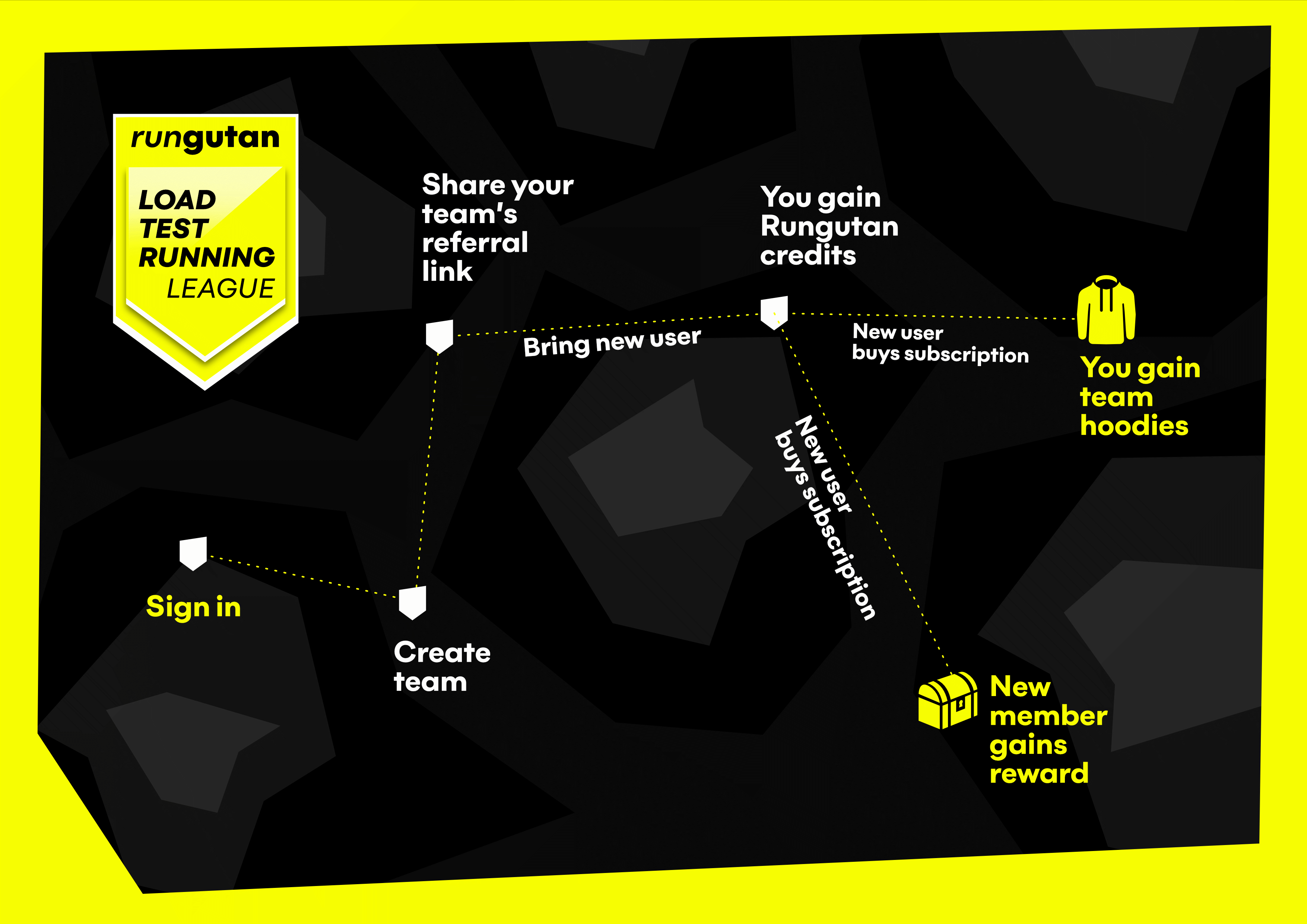Pentru a atrage noi utilizatori în acest context al colaborărilor de la distanță, Rungutan a creat o provocare online numită Load Test Running League, o campanie de recomandări, prin care se oferă credite Rungutan gratuite celor care recomandă echipe sau utilizatori noi.