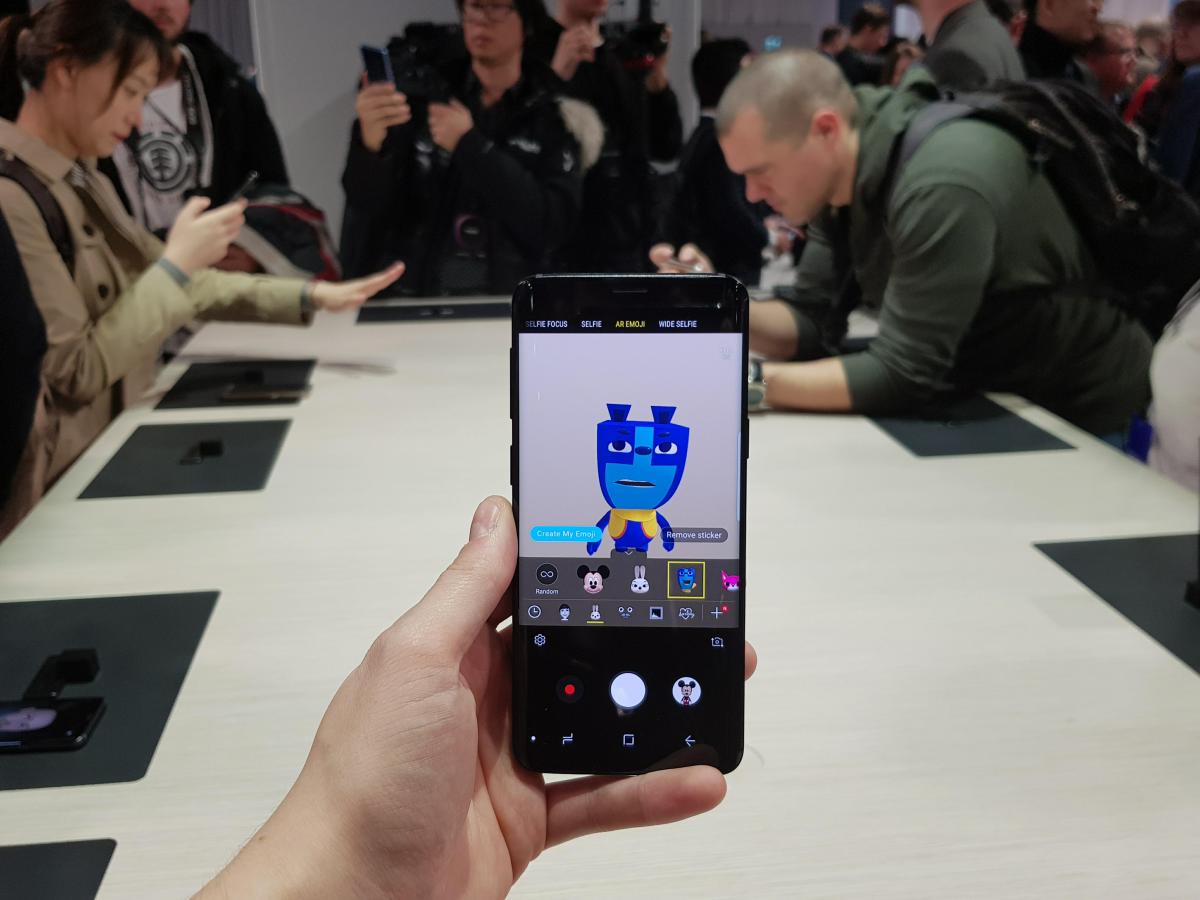- AR Emoji: Samsung permite utilizatorilor să creeze un emoji care arată, sună și acționează exact ca ei. AR Emoji folosește un algoritm de învățare al datelor, care analizează o imagine 2D a utilizatorului și preia peste 100 de caracteristici faciale pentru a crea un model 3D care să reflecte și să imite expresii precum clipitul și mișcări ale capului, oferind o personalizare unică. AR Emoji împărtășește sentimentele din viața reală nu numai în format video, ci și cu o serie de stickere, prin folosirea unui format standard de fișiere AGIF, astfel încât utilizatorii să poată partaja emoji-ul în majoritatea platformelor de mesagerie.