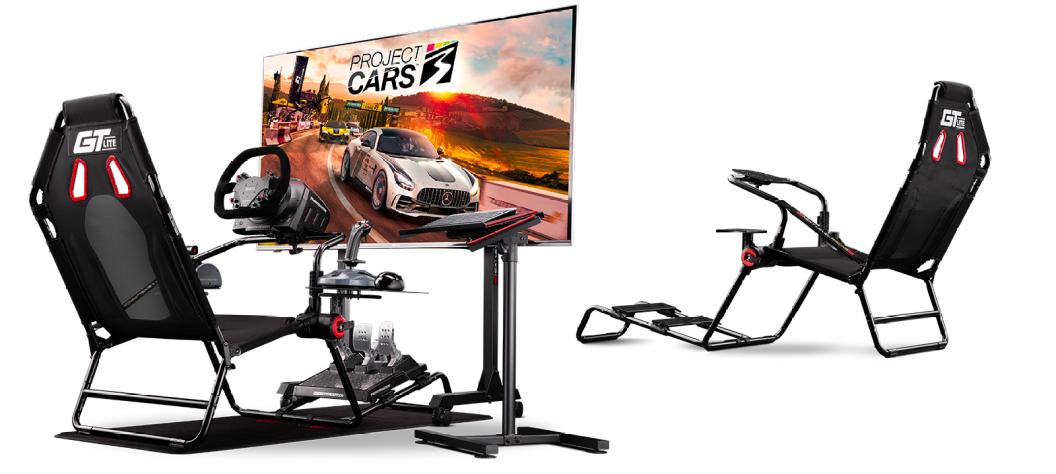 Atunci când nu este folosit, GT Lite Folding Cockpit poate fi pliat, eliberând astfel spaţiul din cameră. Ca şi performanţe, noul cockpit este complet ajustabil, oferind posibilităţi multiple de montare a echipamentelor electronice, precum şi opţiuni de ajustare a acestora. Astfel, volanul, schimbătorul și pedalele pot fi reglate pentru a asigura utilizatorilor cea mai bună și cea mai confortabilă poziție pentru curse.