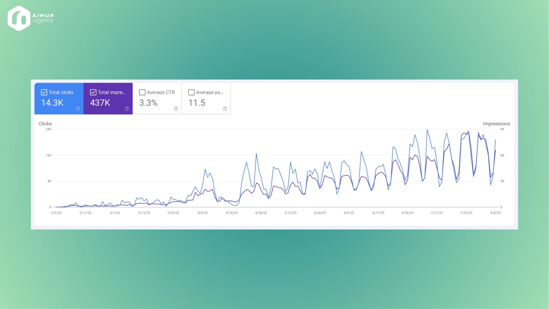 Launched as a proof-of-concept in November 2024, aimup.agency has already built a portfolio of over 20 local and international clients across various industries, helping them exponentially grow their organic traffic — and with it, revenue from searches made by potential customers on Google.
