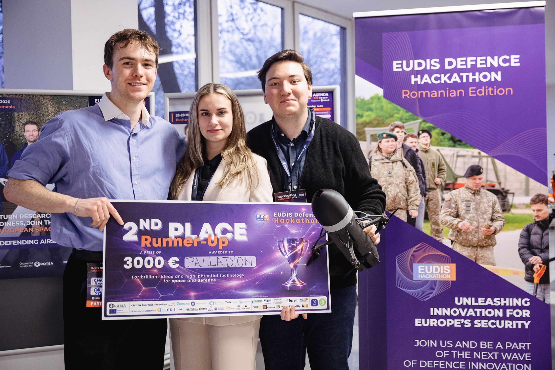 Pe locul al doilea s-a clasat Palladion Systems, cu o soluție de interceptare a dronelor (C-UAS) proiectată pentru a fi accesibilă și rapid de produs. Startup-ul a primit un premiu de 3000 de euro și acces la programe, expunere media și conexiuni cu lideri din sectorul de apărare.