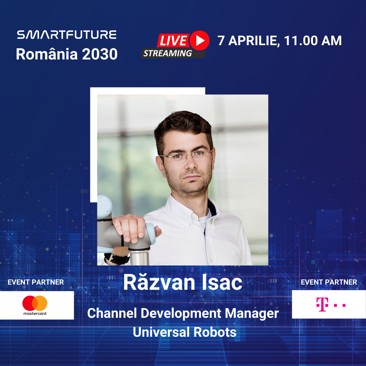 În cadrul panelului Industry 4.0 care va începe de la ora 12, miercuri pe 7 aprilie la Smart Future, Răzvan va discuta despre cum pot companiile cu activități în industrie să-și elibereze angajații de sarcinile repetitive prin intermediul automatizării și cum îi pot plasa în mijlocul unor activități mai creative, care generează mai multă valoare.