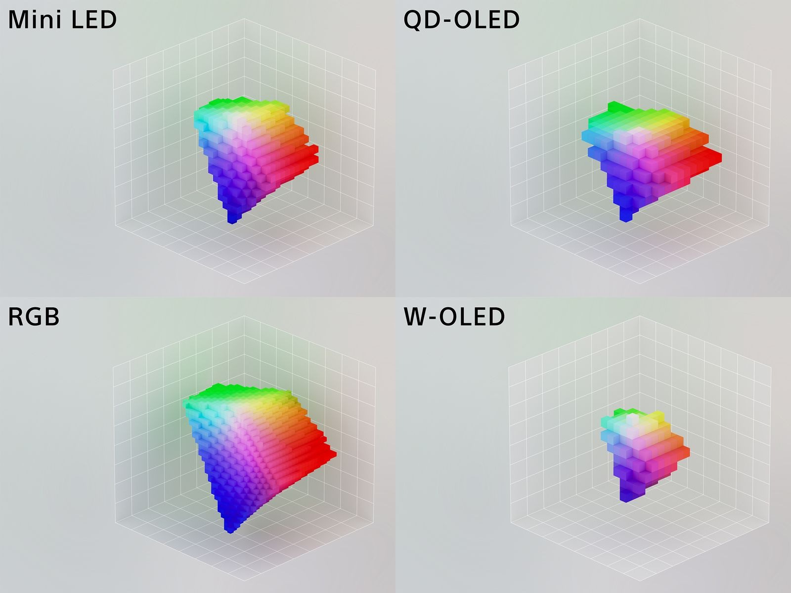 Noul panou oferă performanță cu gamă extinsă de culori, datorită unui LED RGB cu acționare independentă. Emisia independentă a culorilor asigură o fidelitate ridicată a acestora, acoperind peste 99% din spațiul de culori DCI-P3 și aproximativ 90% din standardul ITU-R BT.2020*2. Volum de culoare extins pentru o reprezentare mai naturală a imaginii