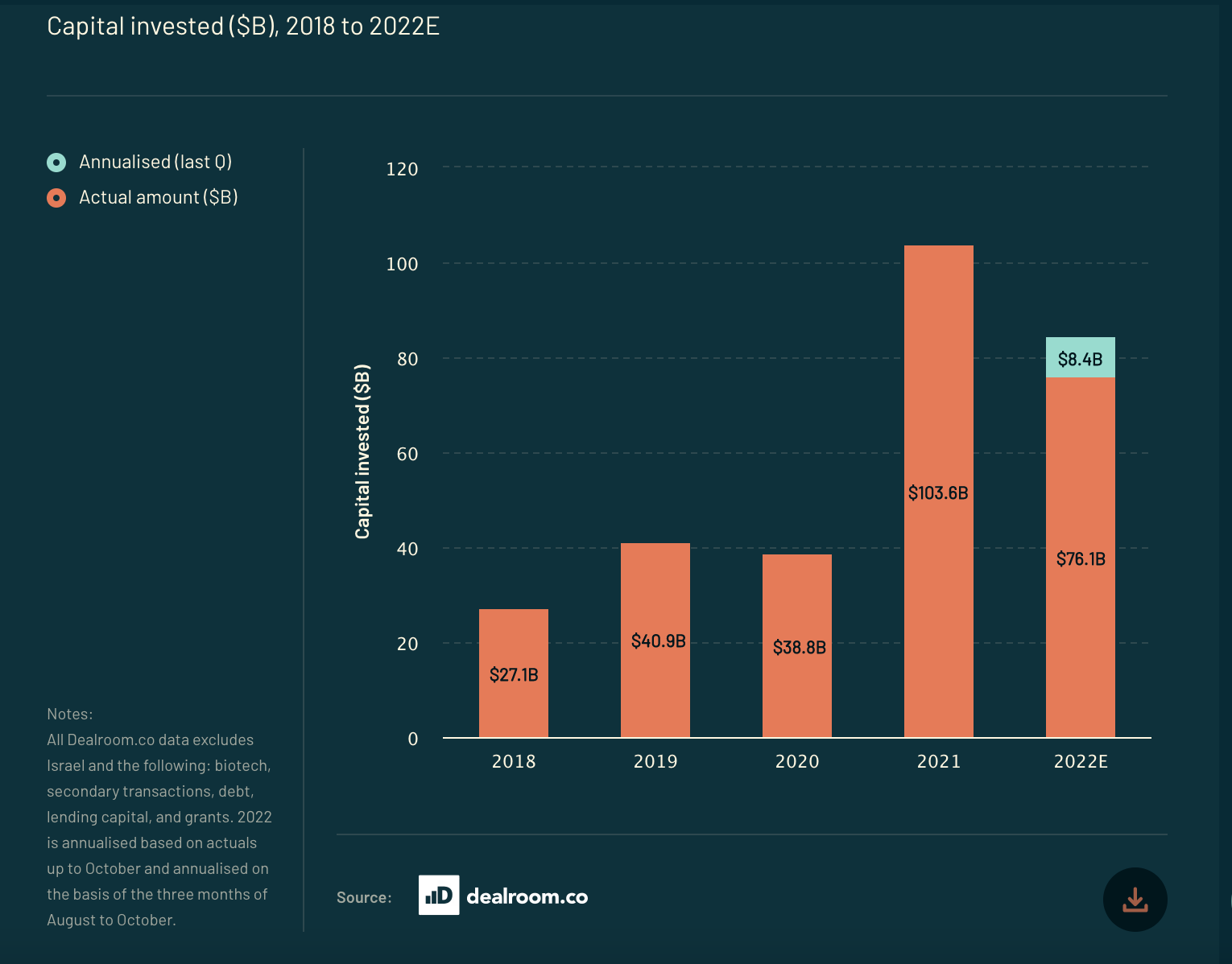 Totuși, nu putem vorbi despre anul 2022 ca fiind doar unul cu probleme, pentru că sunt două părți ale poveștii. Până la finalul primului trimestru din 2021, valoarea finanțărilor acordate de fondurile de investiții a crescut cu 52% față de 2021. Chiar la finalul primei jumătăți din 2022, capitalul total investit încă era cu circa 4% comparativ cu aceeași perioadă a anului anterior.