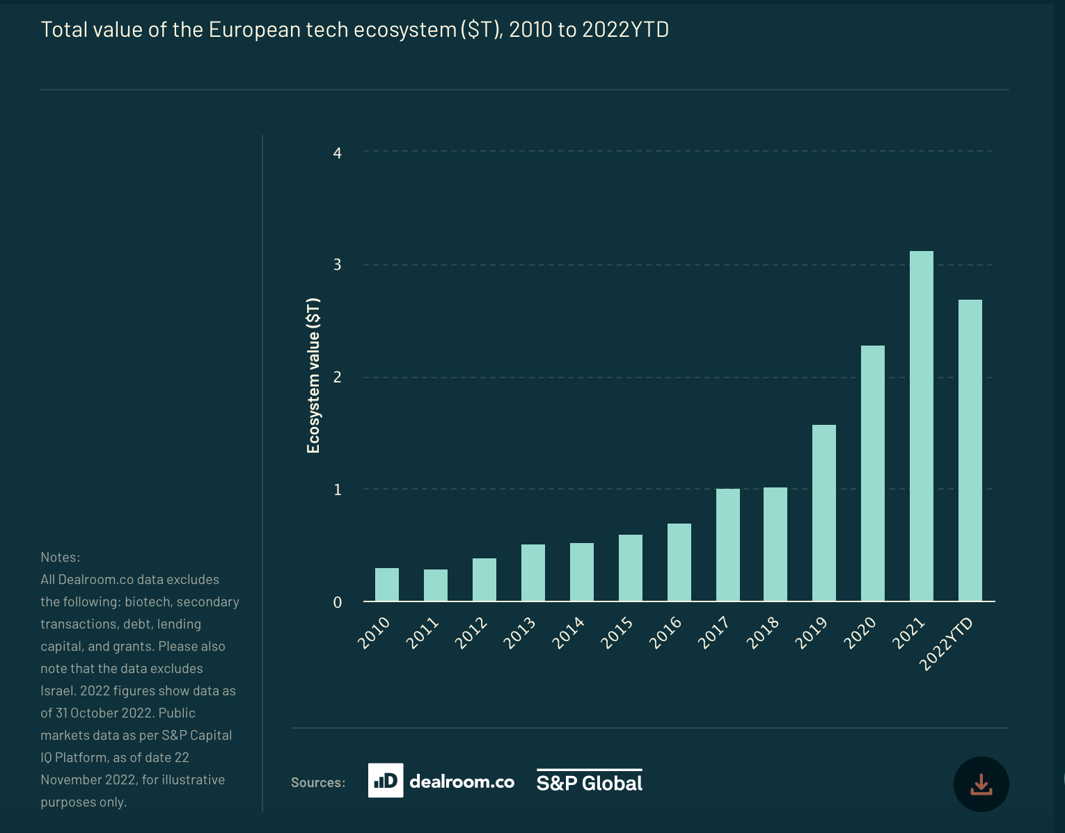 Ca și mai devreme, există și o parte bună. Comparativ cu 2015, ecosistemul european de tech și startups a adăugat peste 2.000 de miliarde de dolari în valoare.