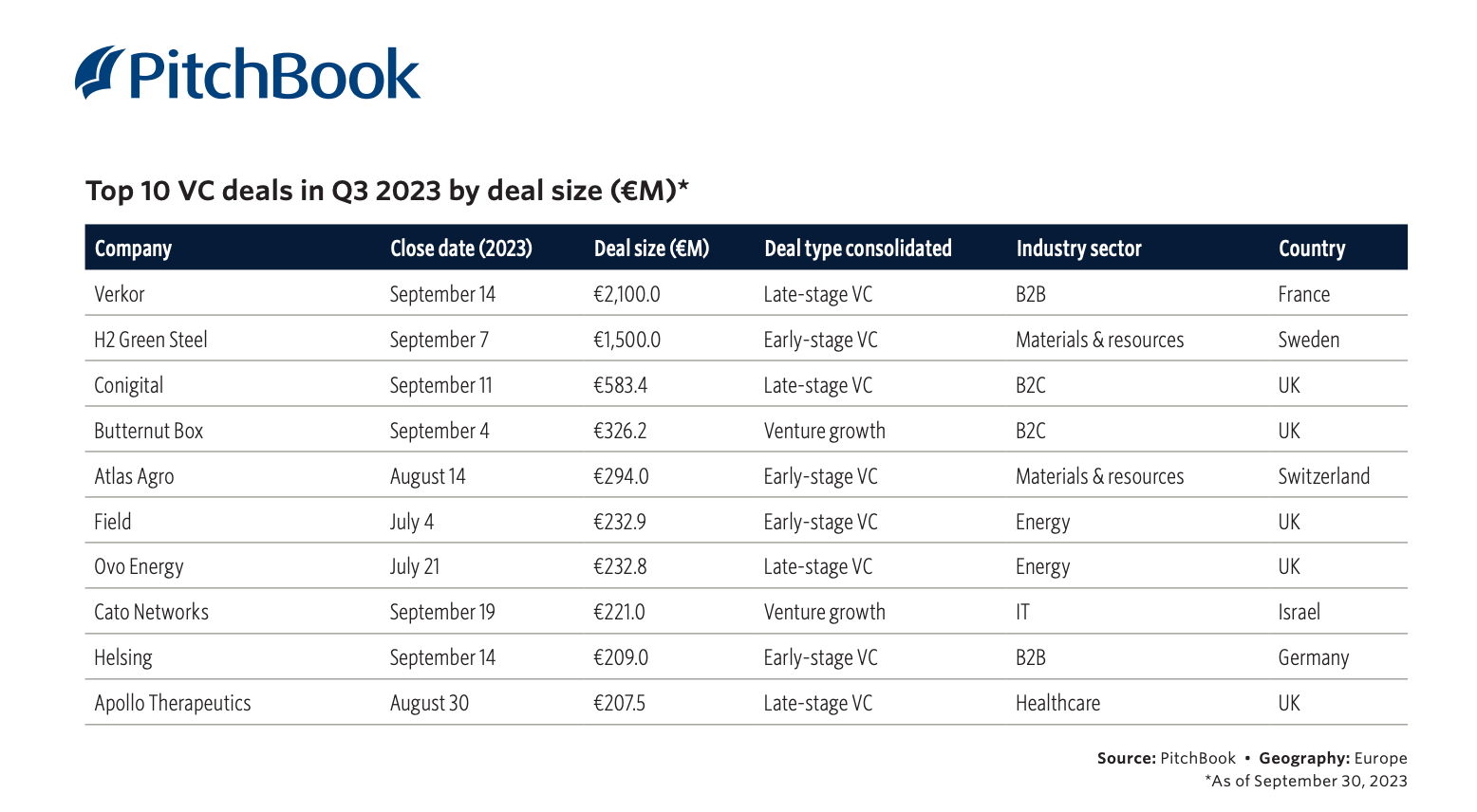 - Cele mai atractive domenii pentru investitorii europeni au fost cleantech și AI – 5 dintre cele mai mari 10 deal-uri ale trimestrului au implicat startup-uri cleantech, inclusiv 3 dintre cele mai mari investiții.