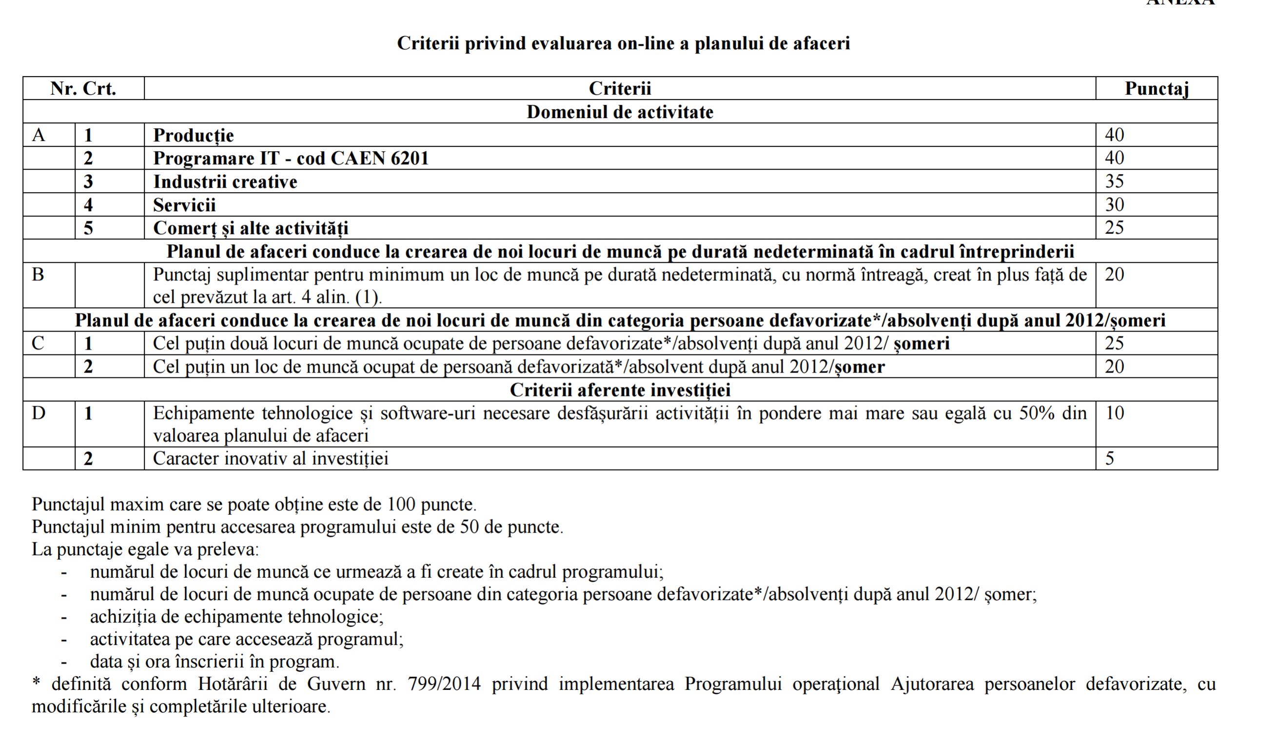 De asemenea, a fost adăugată condiția ca firma beneficiară să angajeze minimum un singur angajat, timp de cel puțin doi ani după finalizarea implementării planului de afaceri. Înainte erau doi angajați, pe o perioadă de cel puțin trei ani.