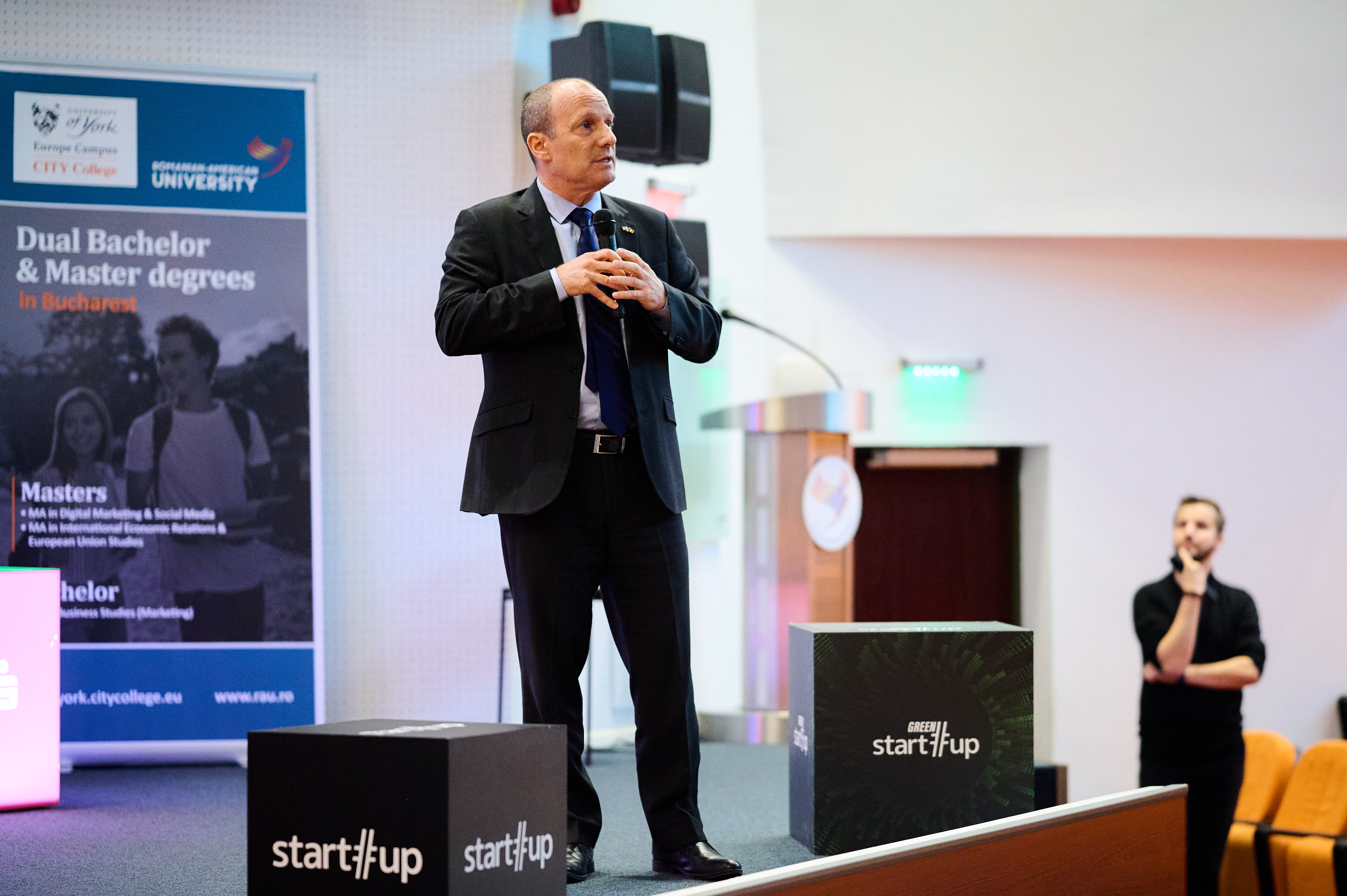 On the stage at the Romanian-American University, Ambassador Reuven Azar of Israel also spoke, discussing the model of the Israeli startup ecosystem, which has so far produced 88 world unicorns, companies valued at 1 billion euros.