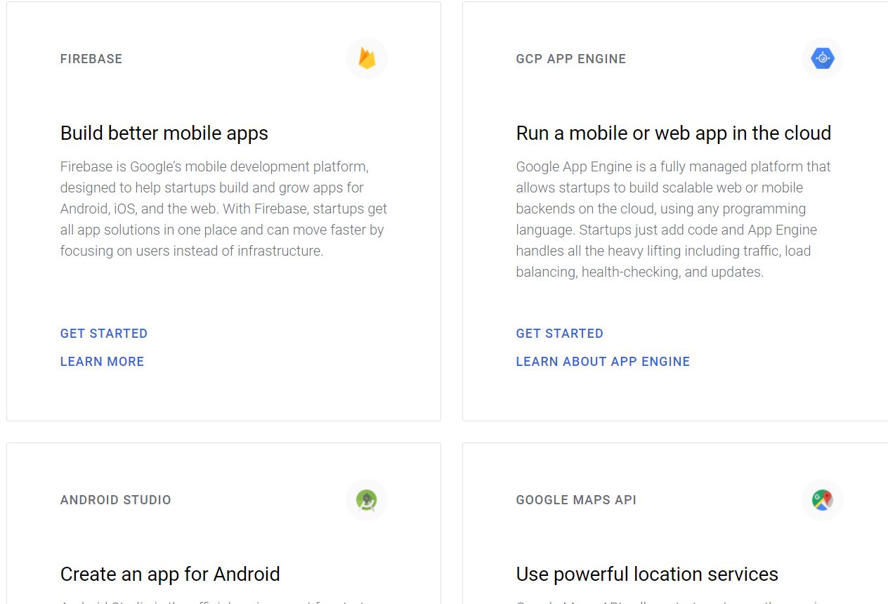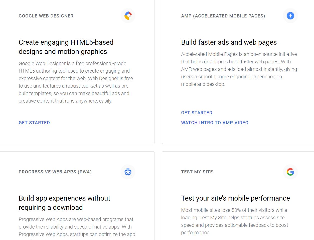 • tools (locul unde vizitatorii găsesc datele necesare împărțite pe categorii precum ”construiește un produs”, ”monetizare”, ”optimizare”, ”securitate”, ”implementează machine learning”).
