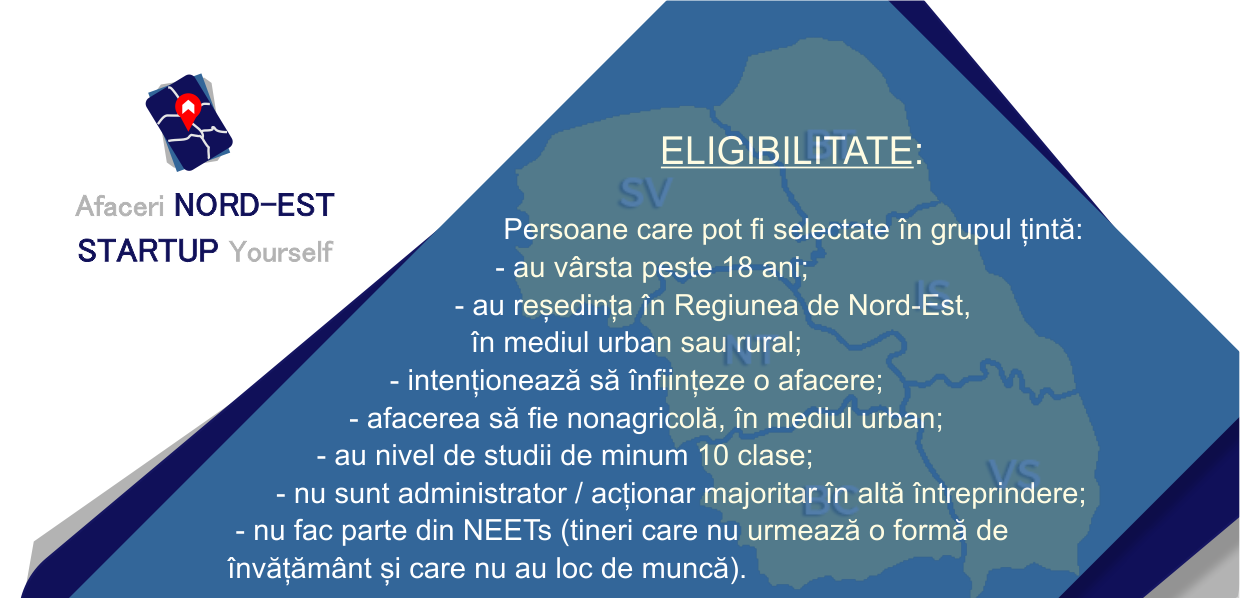 Proiectul are ca focus antreprenorii din județele Neamț, Vaslui, Bacău, Iași, Suceava și Botoșani, și se va derula în 3 etape: