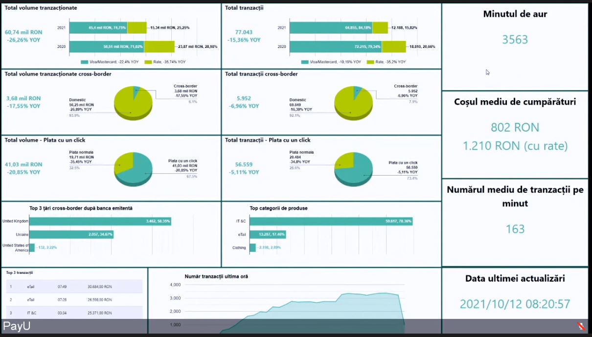 - Tranzacții achiziționate prin plata cu un singur click: 208.485, cu peste 64% mai mult decât în anul 2020 la aceeași oră;