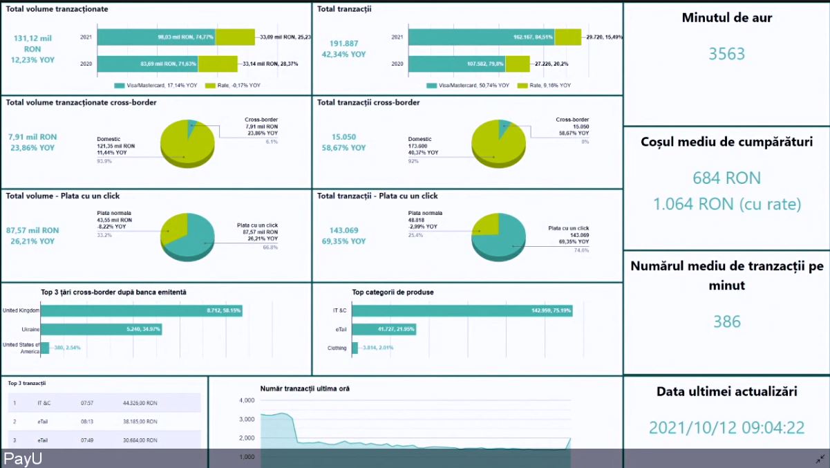Numărul de tranzacții continuă să crească accelerat și a ajuns la 411.365, cu 31,75% mai mult decât la aceeași oră în anul 2020;
