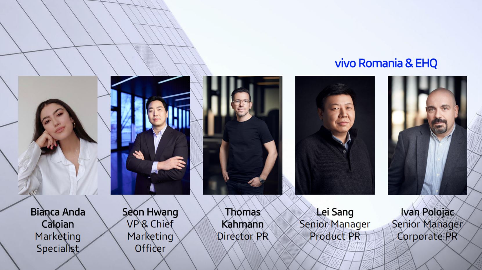 De operațiunile vivo în România și în Europa se ocupă Seon Hwang, VP & Chief Marketing Officer, Thomas Kahmann, PR Director, Lei Sang, Senior Manager Product PR, Ivan Polojac, Senior Manager Corporate PR și Bianca Anda Caloian, Marketing Specialist.