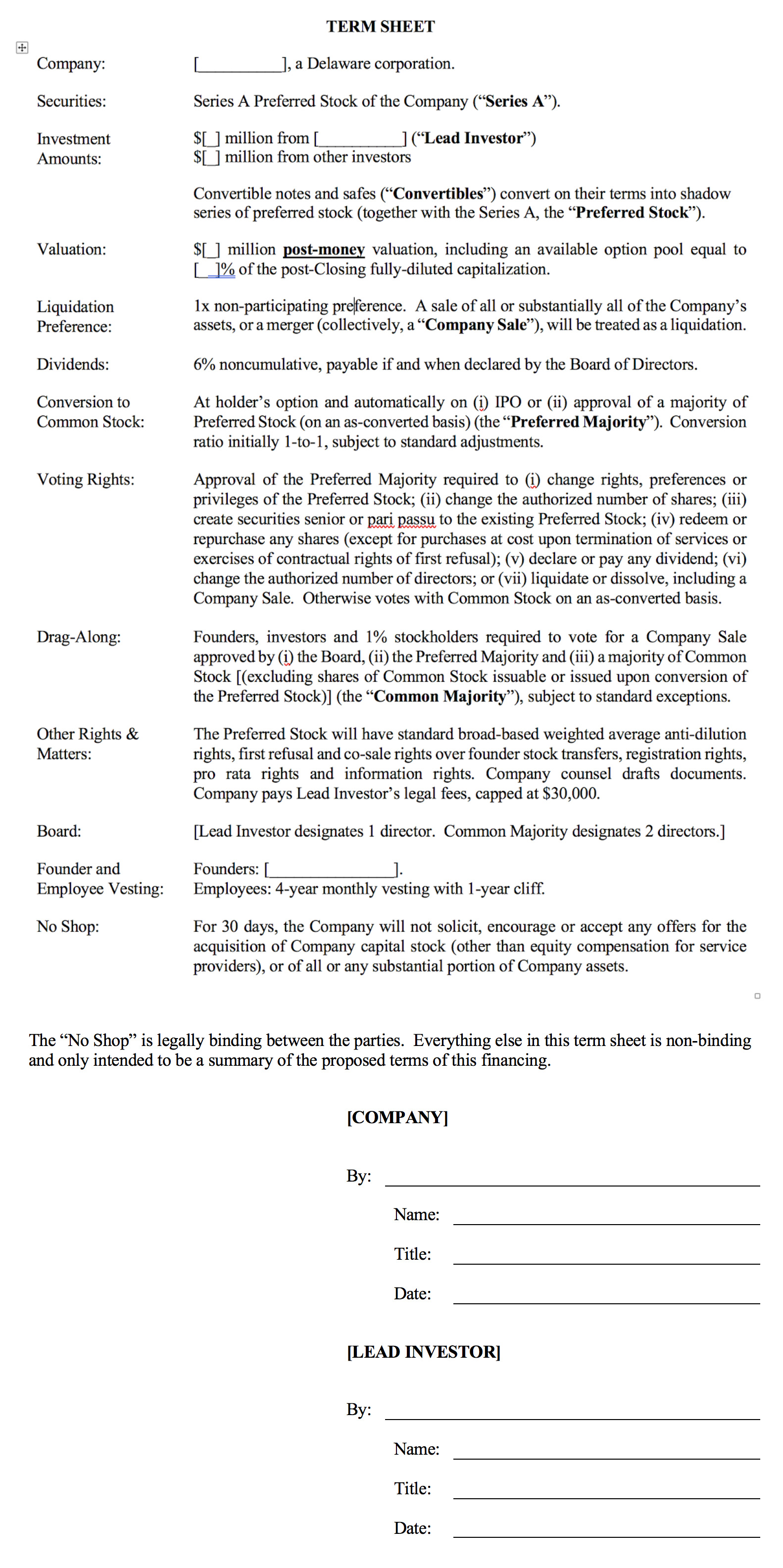 Potrivit Y Combinator, cele mai multe tranzacții din Silicon Valley au început să aibă un term sheet din ce în ce mai mic, de doar două pagini.