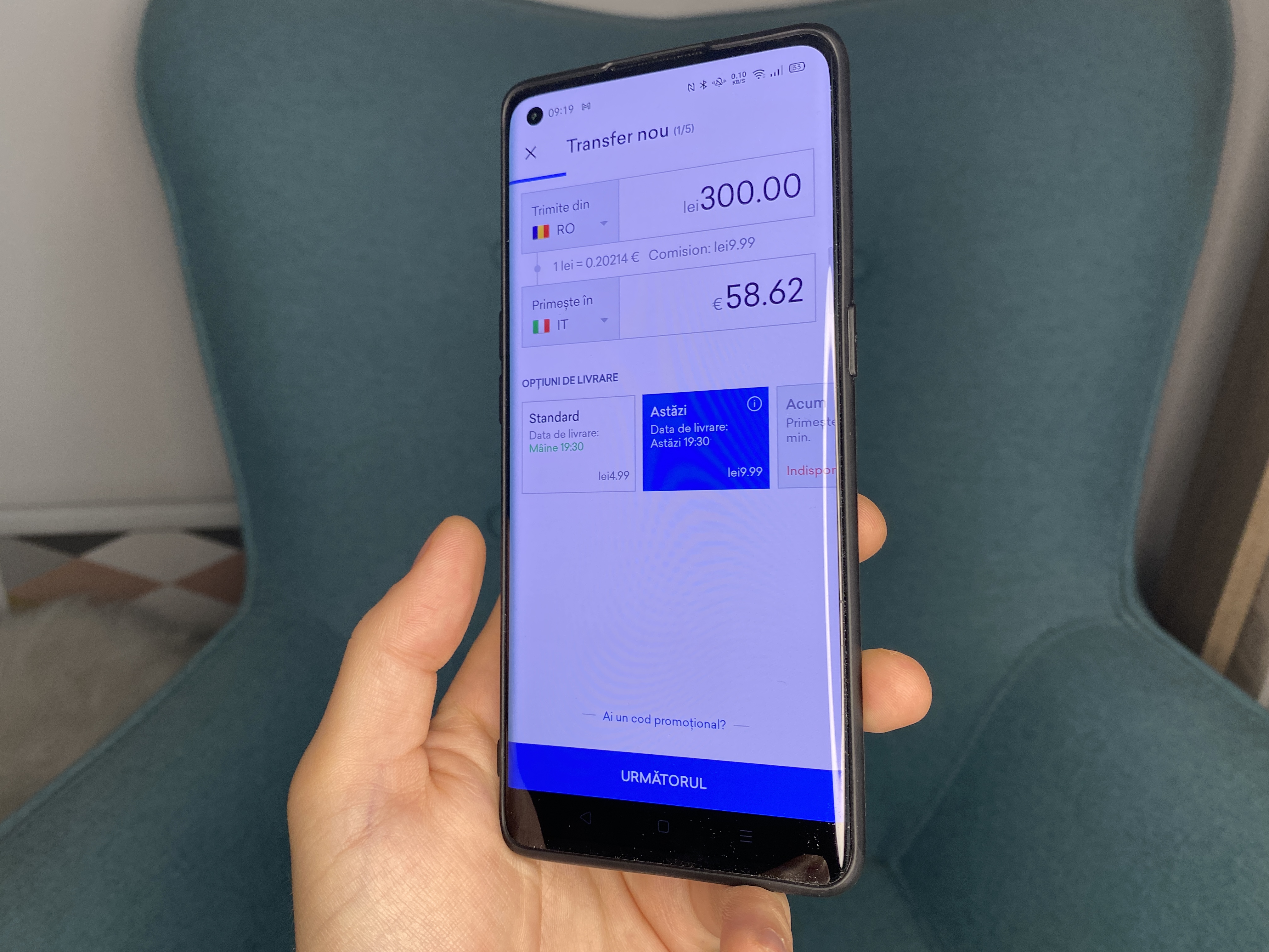 Aplicația sau site-ul desktop sunt ușor de înțeles, se deschid direct cu oportunitățile de transfer, iar comisioanele pentru cele trei tipuri de transferuri (Instant, În aceeași zi sau Mâine) sunt afișate transparent pentru a ști cât plătești pentru serviciile acestea.