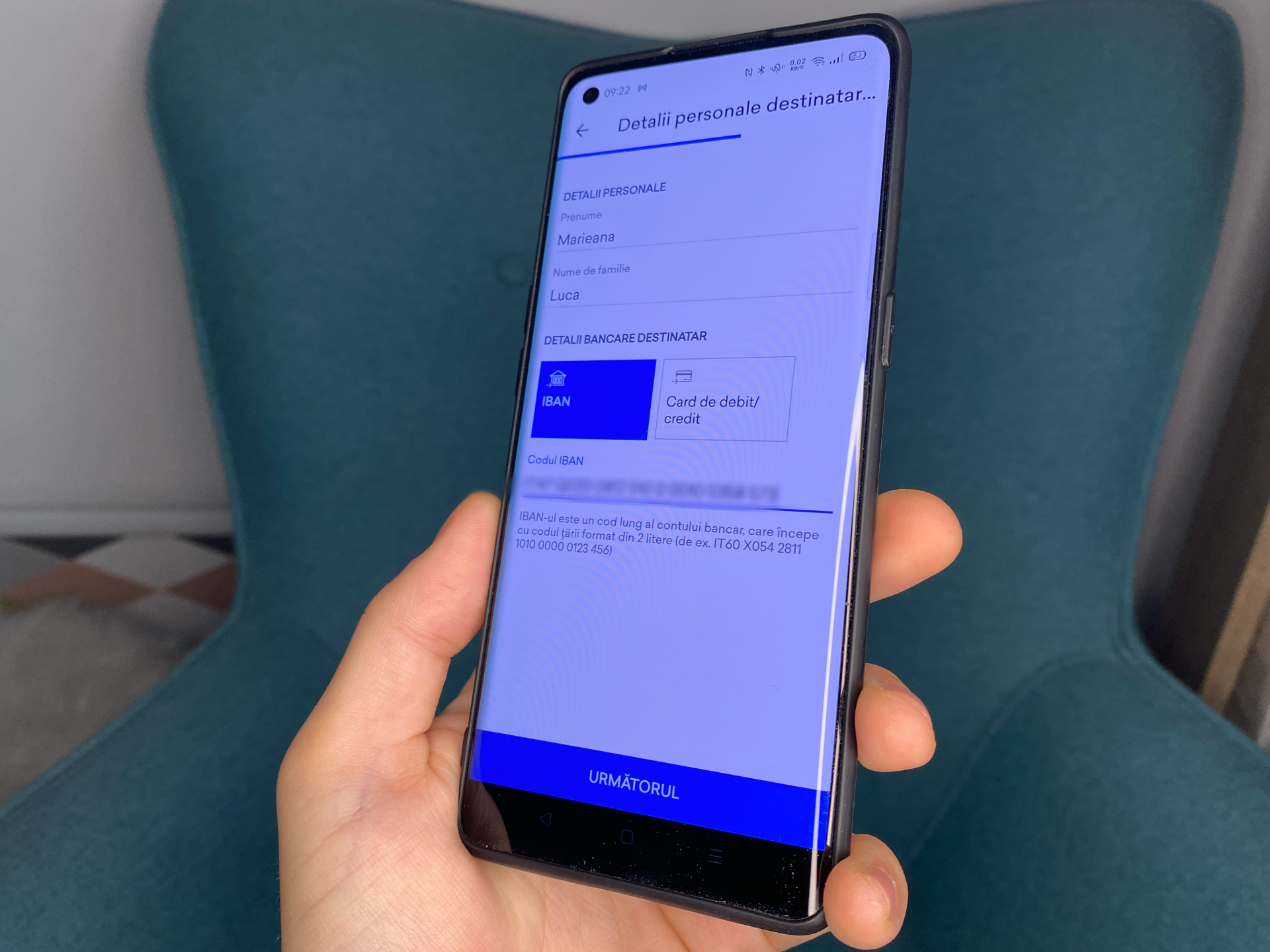 10. Alege dacă transferi direct pe cardul destinatarului sau în contul său bancar.
