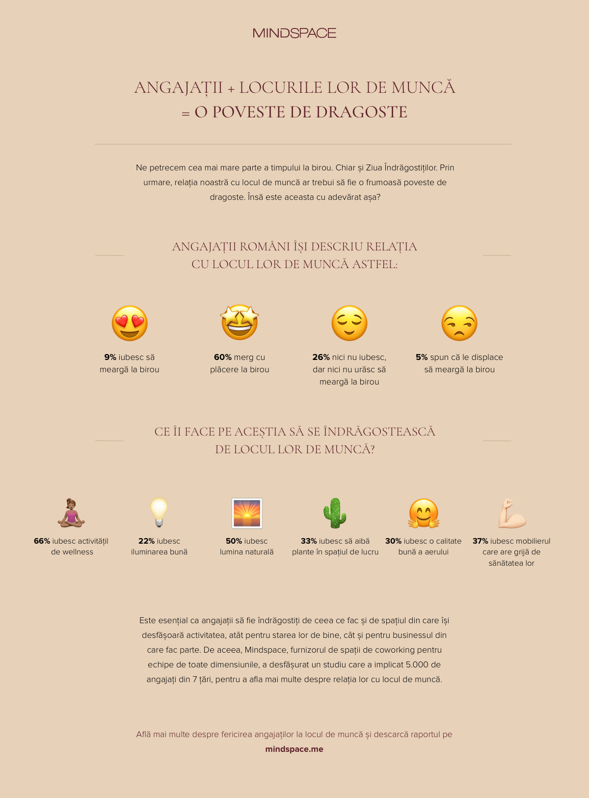 Mindspace, furnizorul de spații de coworking pentru echipe de toate dimensiunile, a desfășurat un studiu care a implicat 5.000 de angajați din 7 țări, pentru a afla mai multe despre relația lor cu locul de muncă.