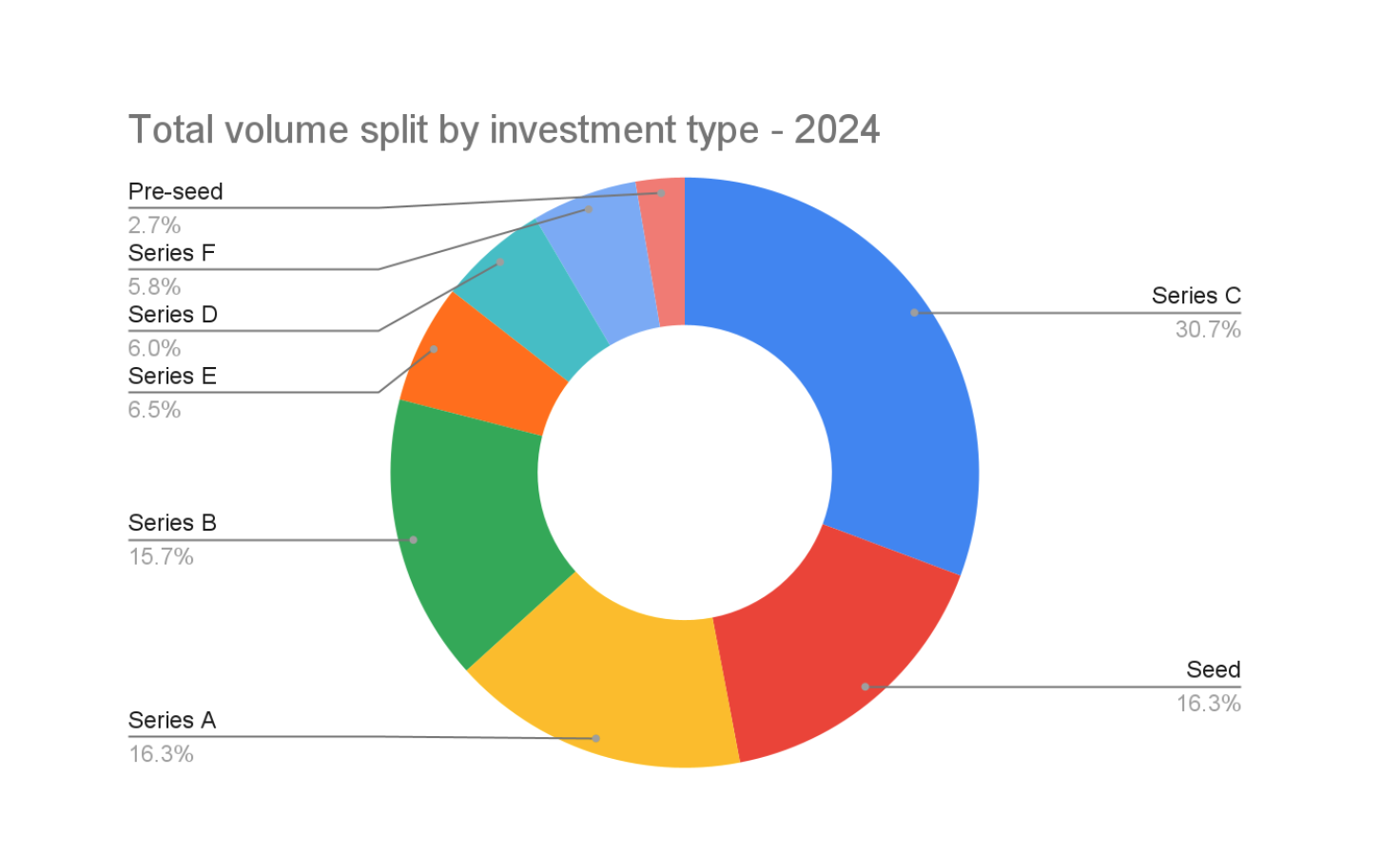 O tendință interesantă observată de realizatorii raportului Venture in Eastern Europe este că 2024 a fost marcat de o creștere a investițiilor în companii mature: 63% din capitalul total a mers spre serii de investiții de la tip A la C.